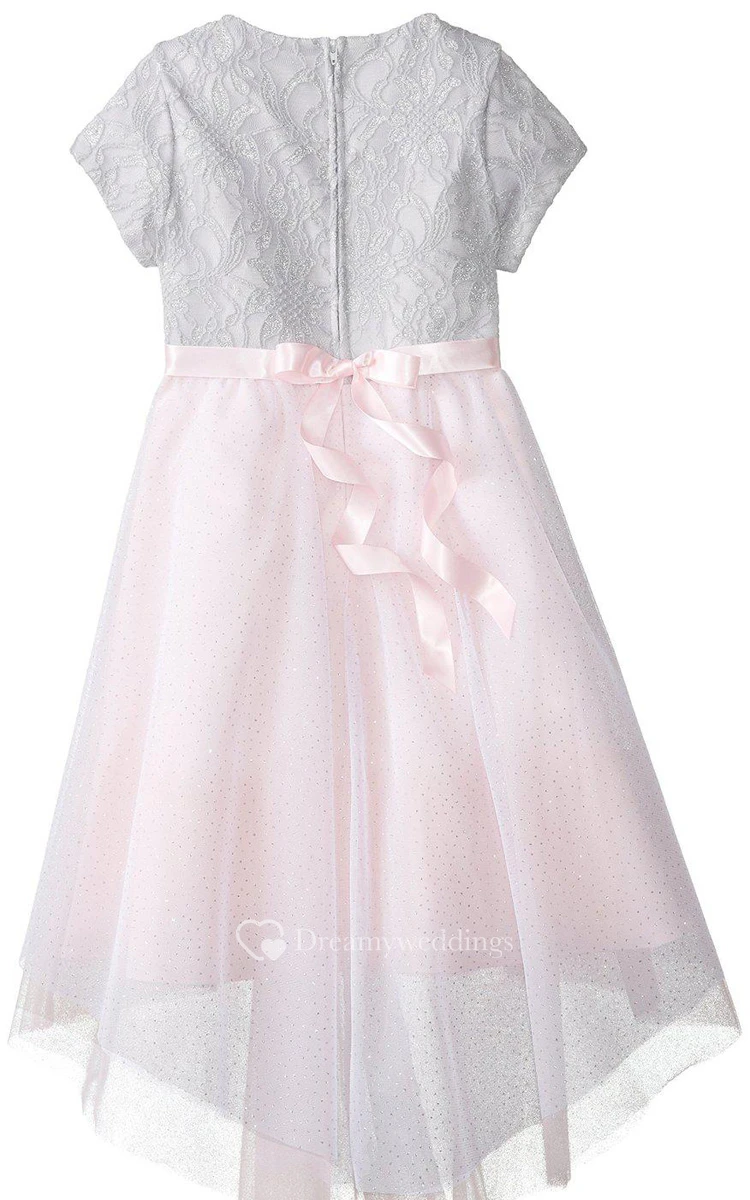 Short-sleeved Scoop-neck A-line Dress With Bow