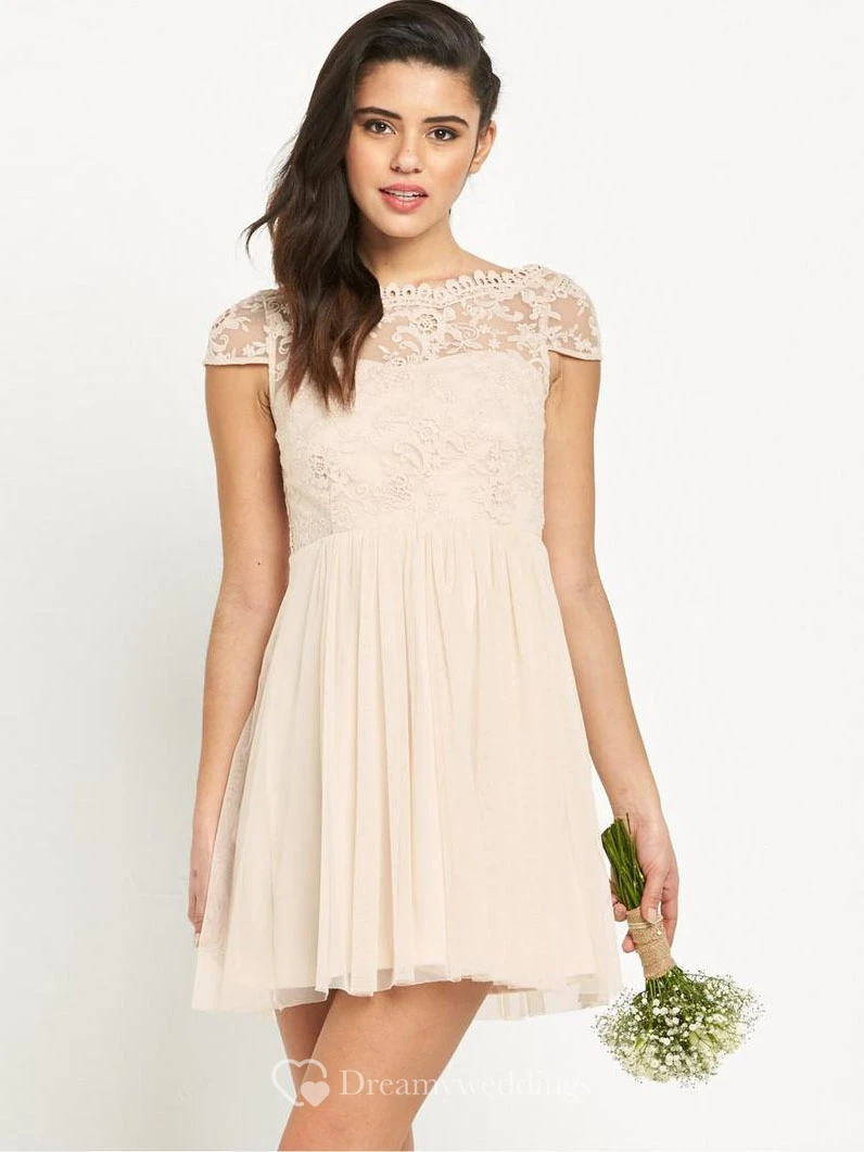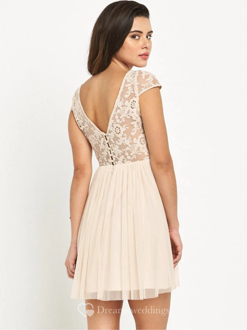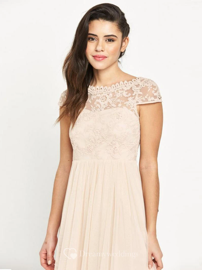 Short Sleeveless Appliqued Bateau Neck Chiffon Bridesmaid Dress With Low-V Back