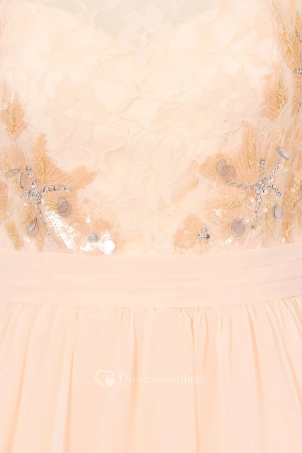Short Sleeveless Scoop Neck Floral Chiffon Bridesmaid Dress