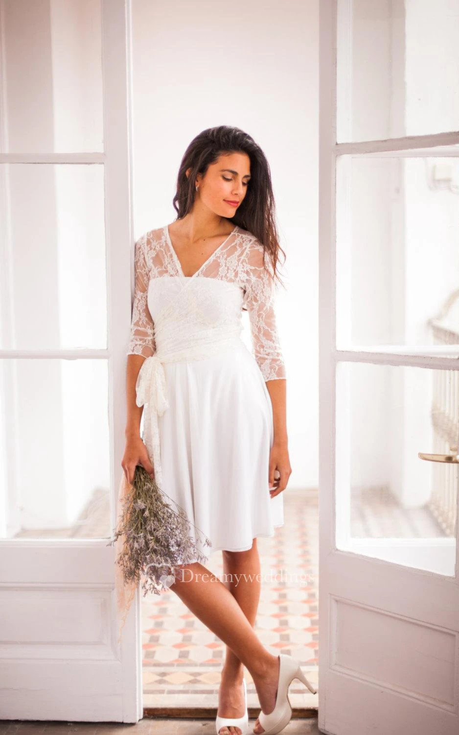 Short Sleeves Lace Whitelace Wedding Civil Bridal Gown
