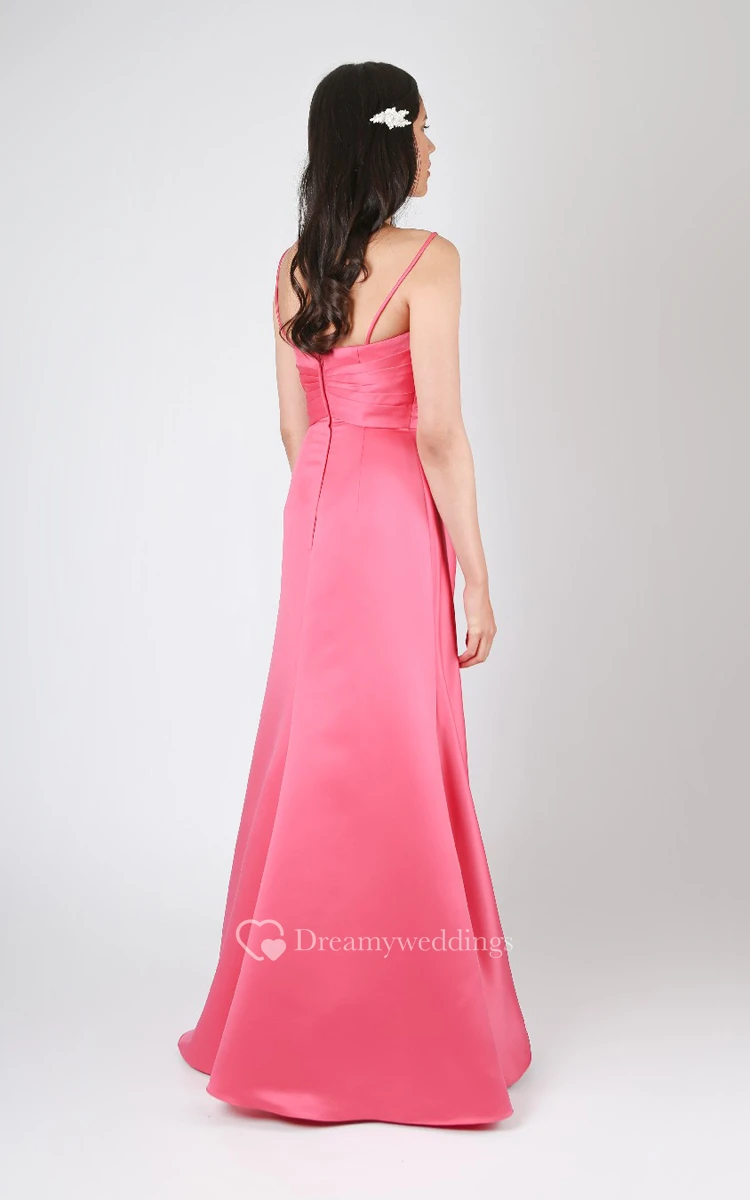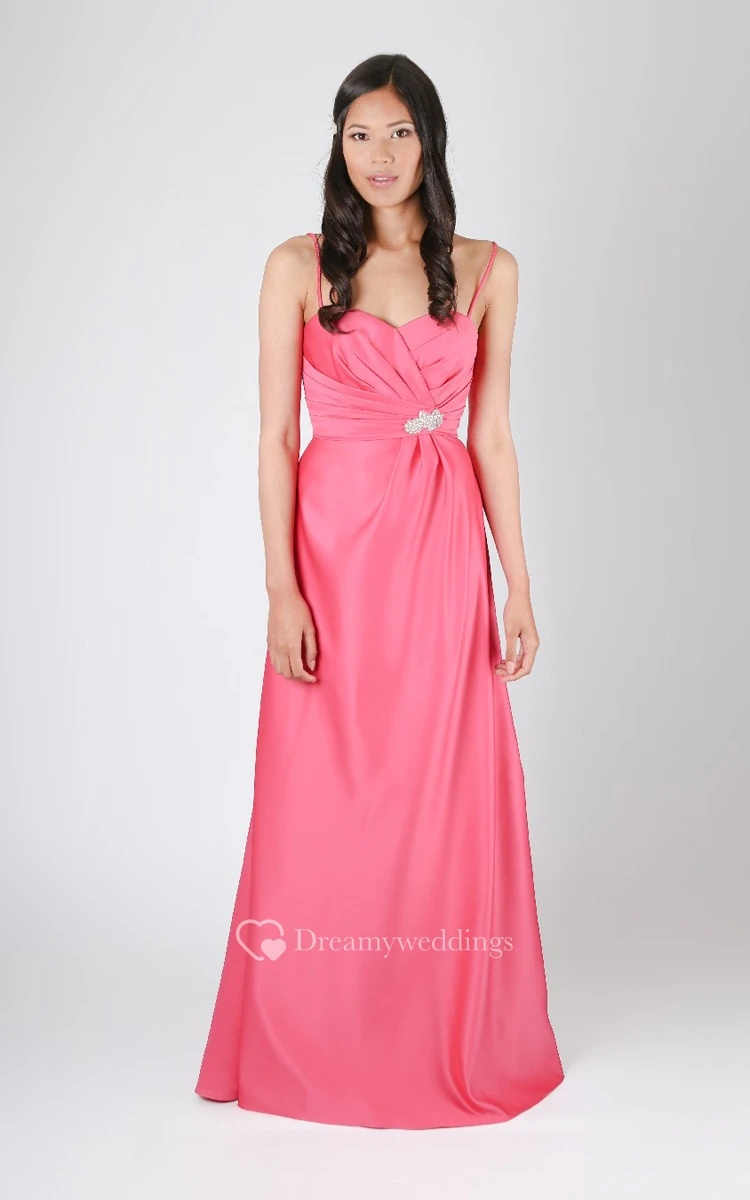 Side Draped A-Line Spaghetti Sweetheart Gown With Crystals