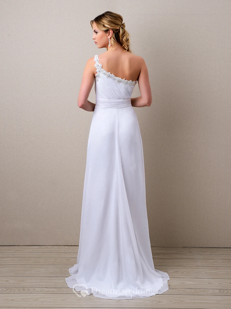 Side Draping A-Line Chiffon Wedding Dress With One-Shoulder And Ruched Bodice