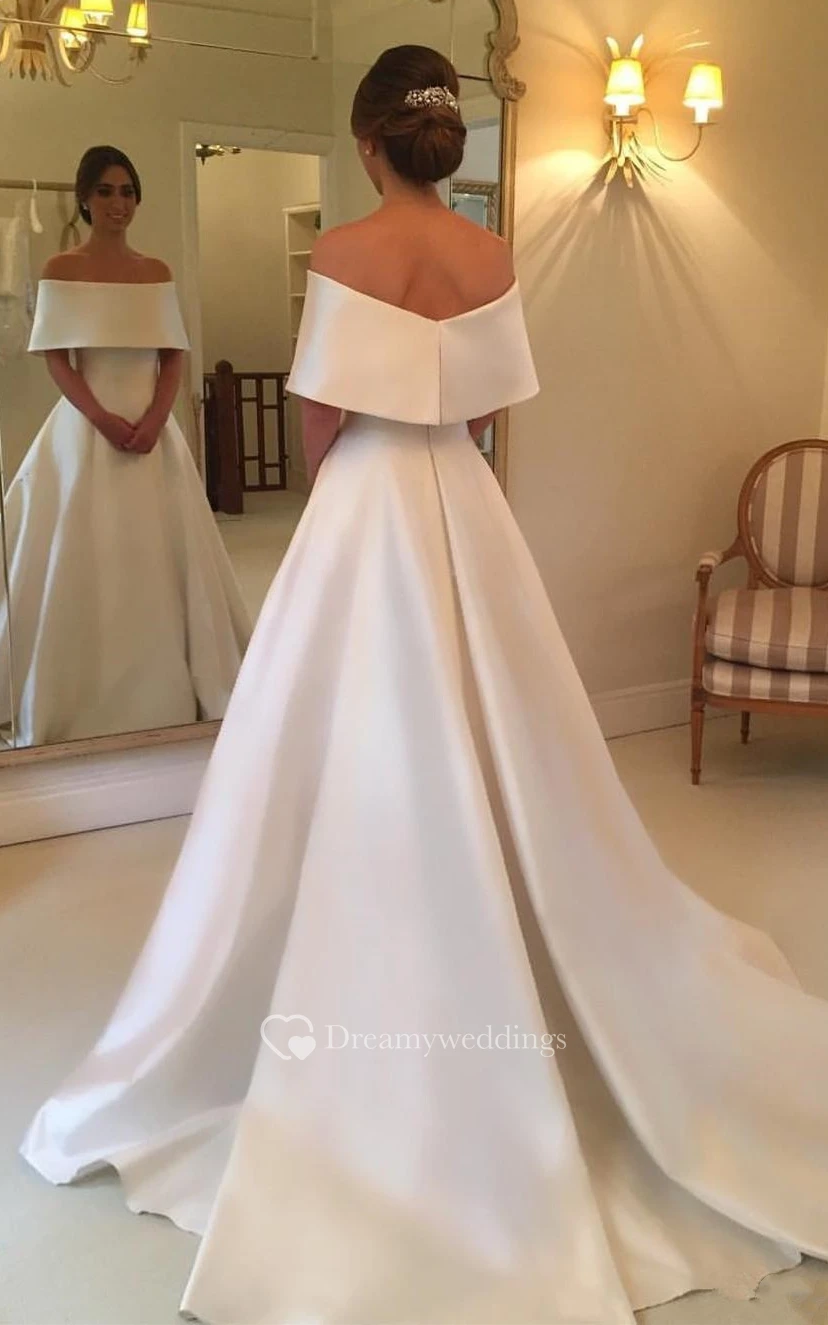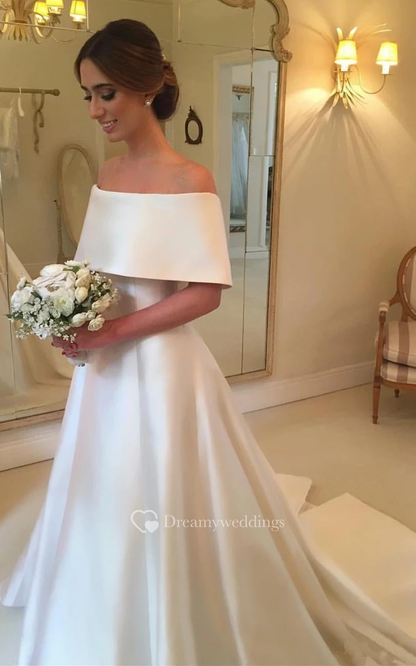 Simple A Line Satin Court Train Wedding Dress with Ruching