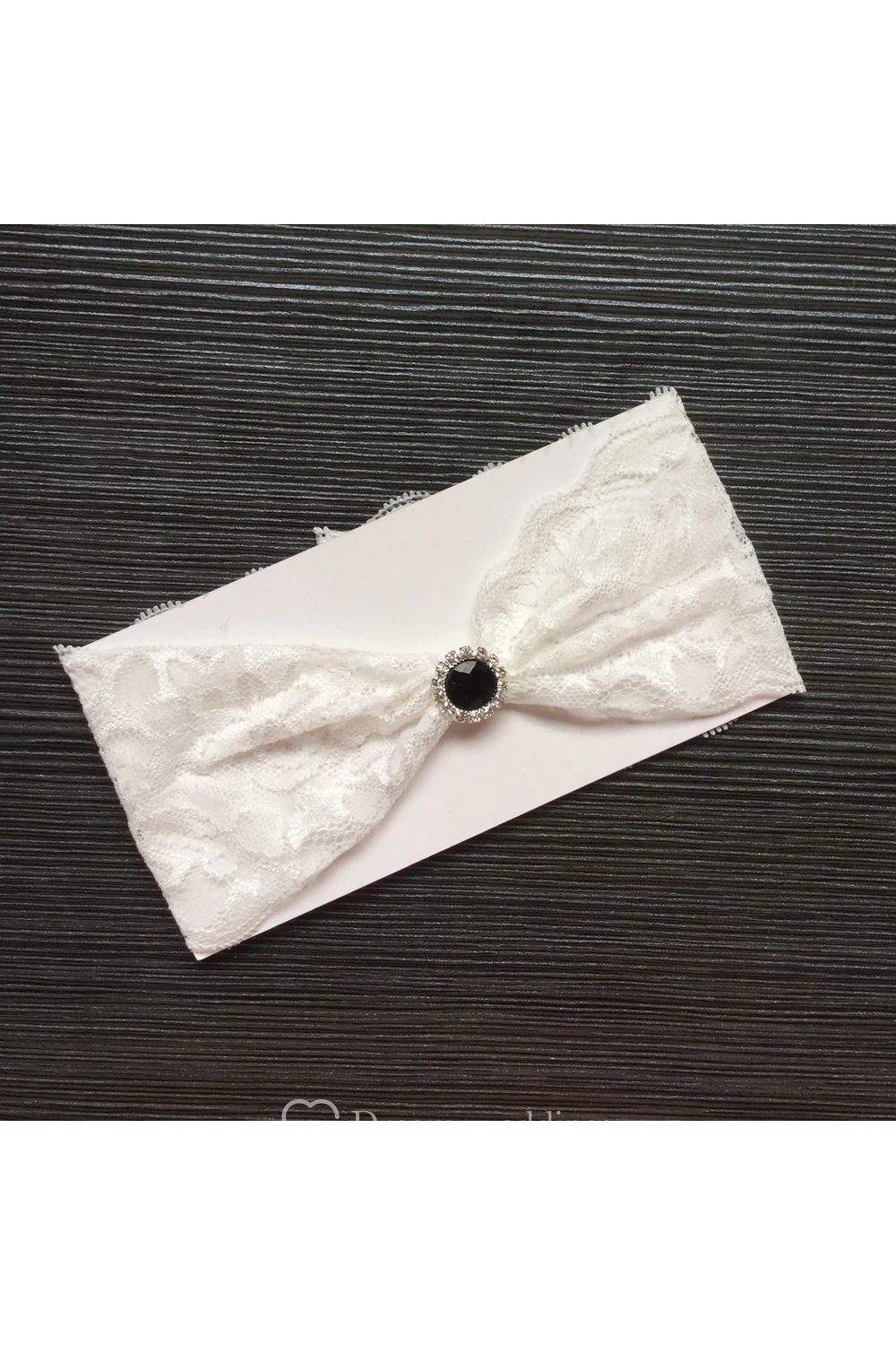 Simple Black Diamond White Lace Elastic Bridal Garter Within 16-23inch