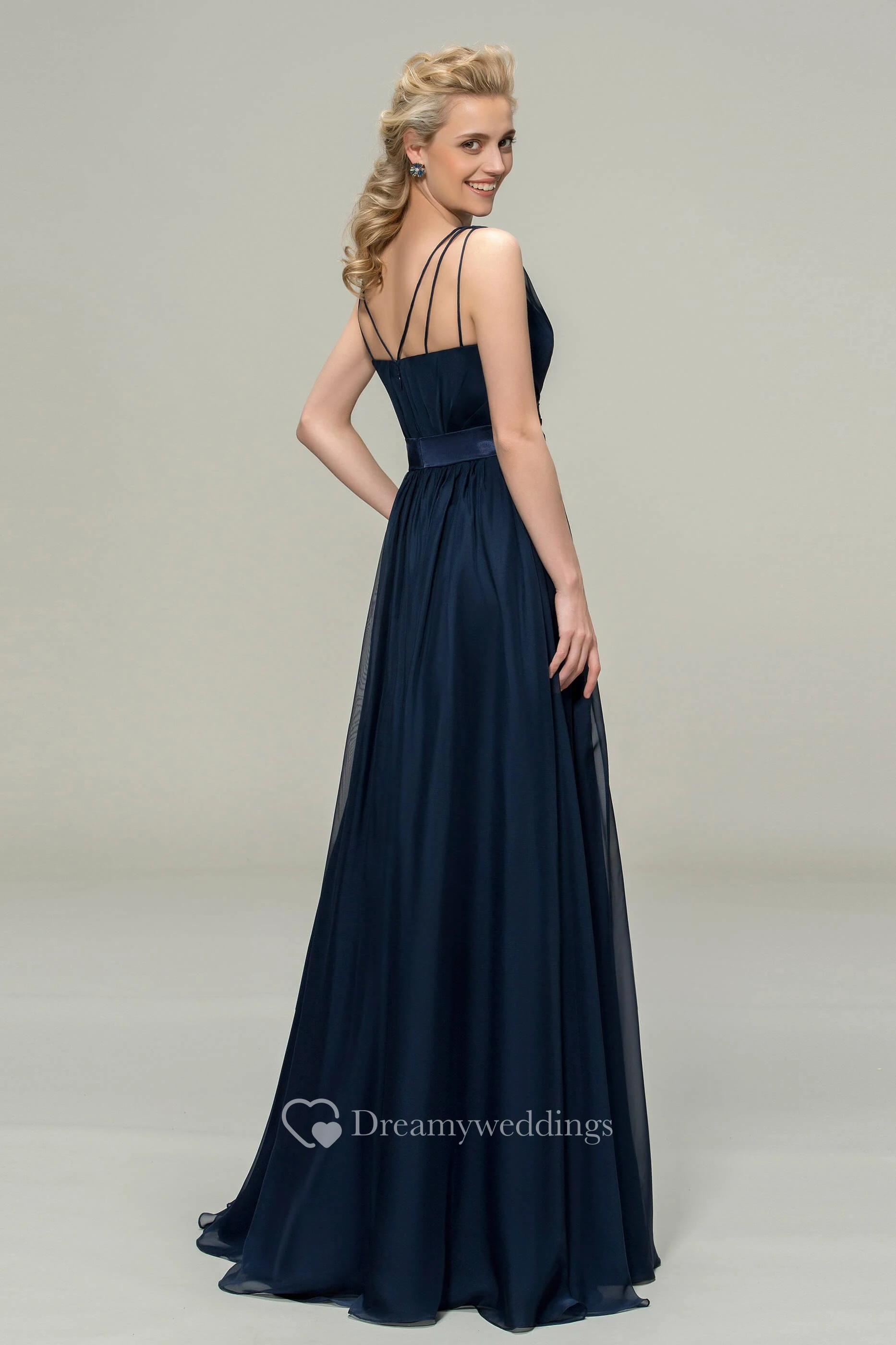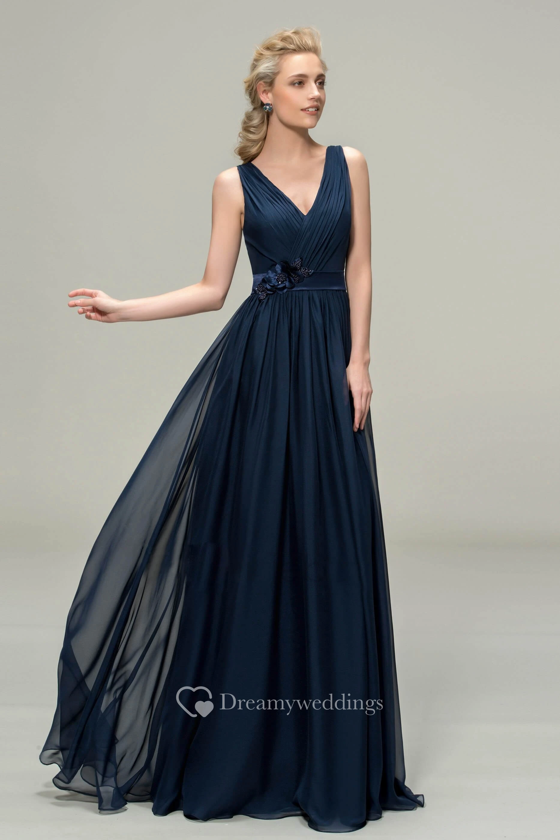 Simple Chiffon Sleeveless V-neck Floor-length Dress With Floral Appliques And Sash