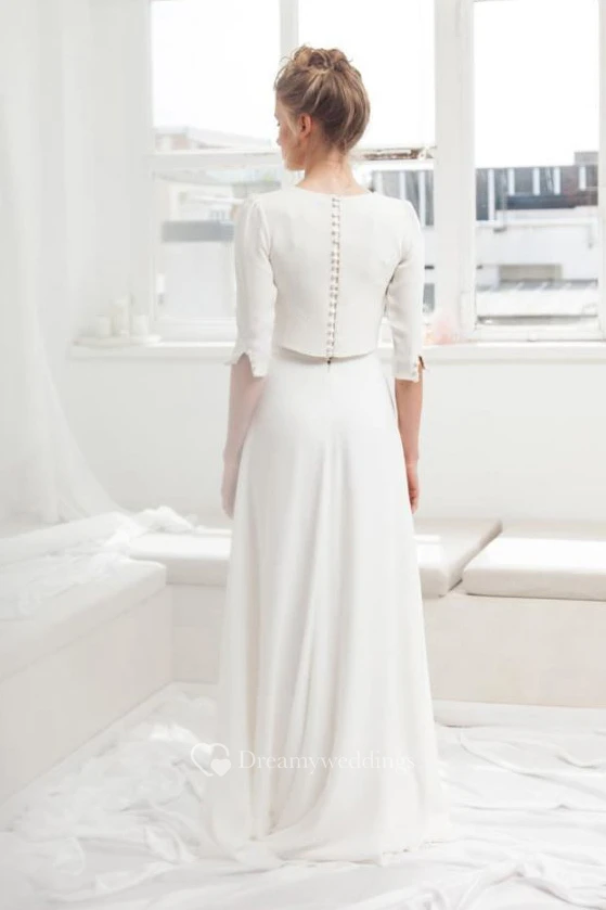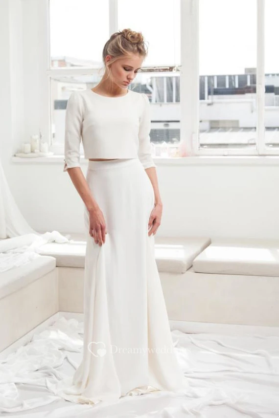 Simple Chiffon Two Piece Bridal Gown With Sweep/Brush Train