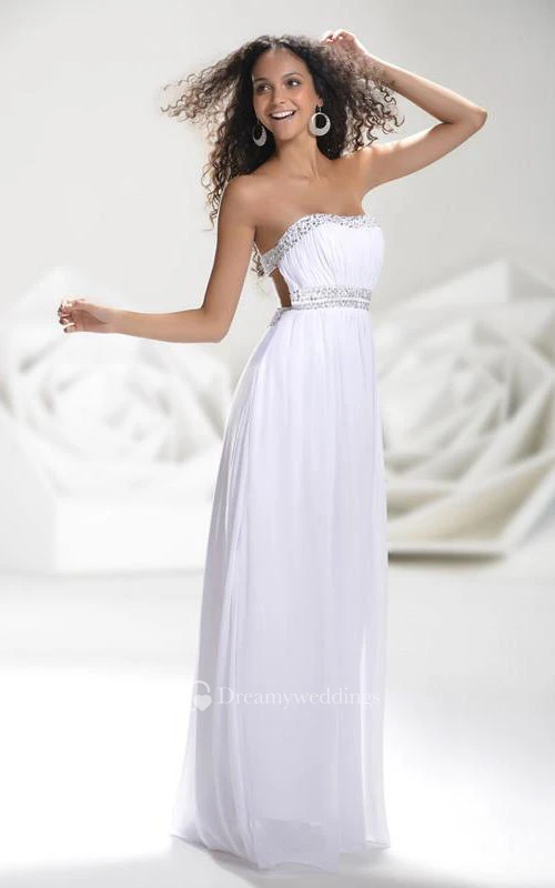 Simple Empire Strapless Beading Prom Evening Dress