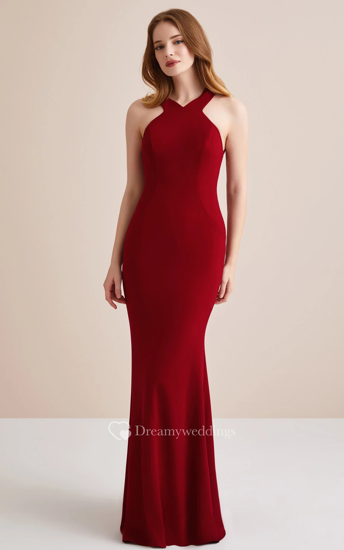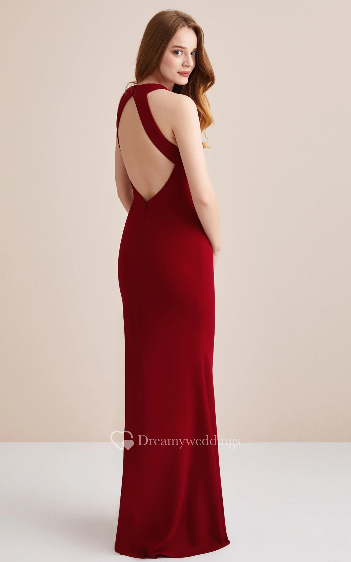 Simple Floor-length Sleeveless Jersey Sheath Cross Back Prom Dress