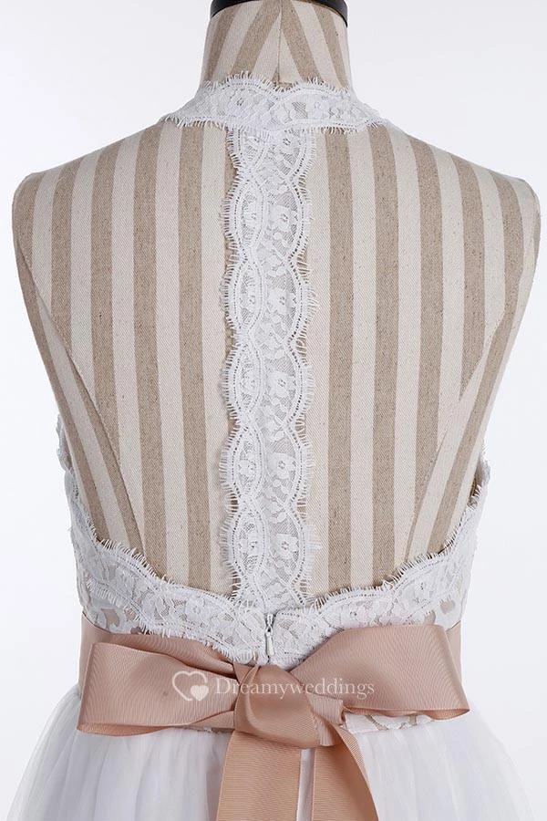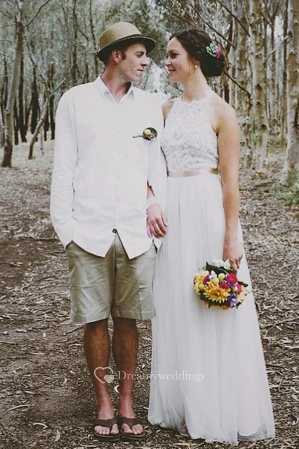 Simple Jewel Sleeveless Floor-length Lace Top Wedding Dress