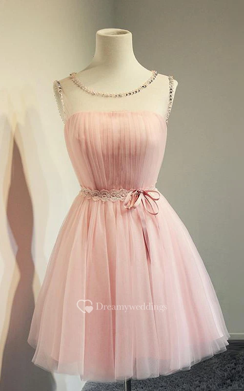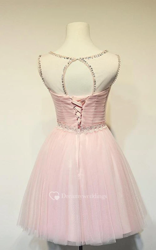 Simple Jeweled Sleeveless Short Tulle Dress