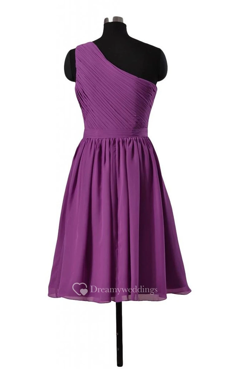 Simple One-shoulder Ruched Chiffon A-line Gown