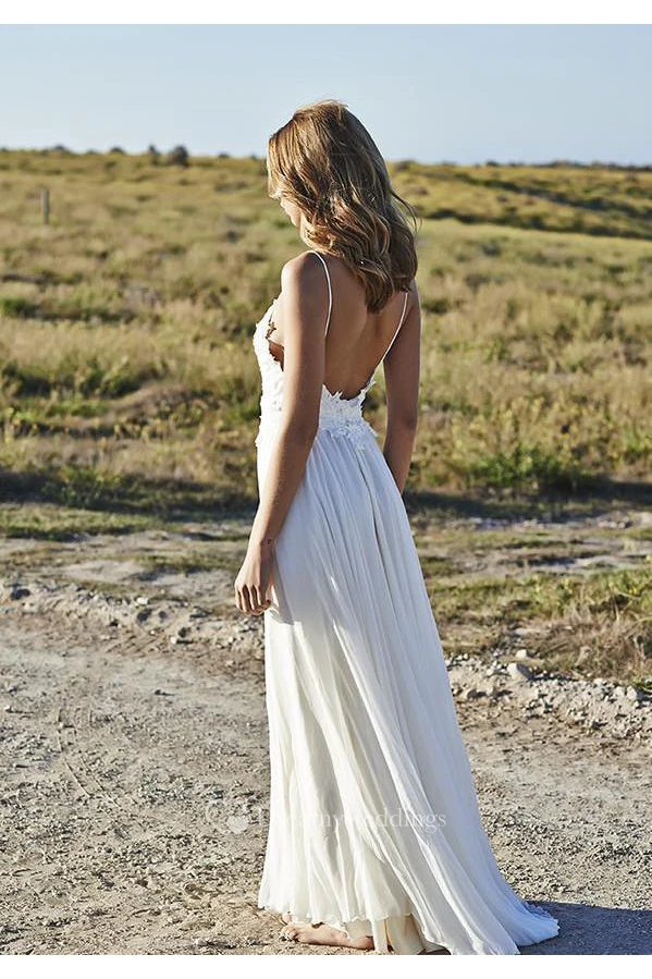Simple Spaghetti Straps Chiffon Wedding Dresses Appliques Beach Bridal Gowns