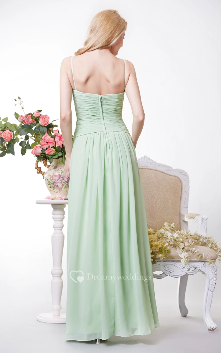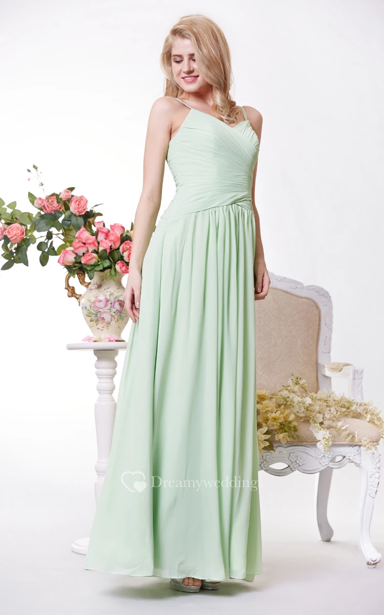 Simple Spaghetti Straps Crisscross Chiffon A-line Gown