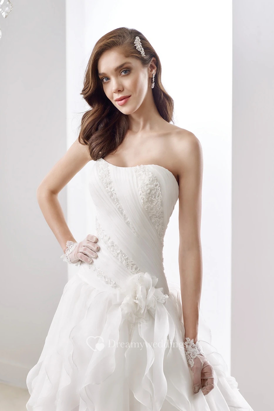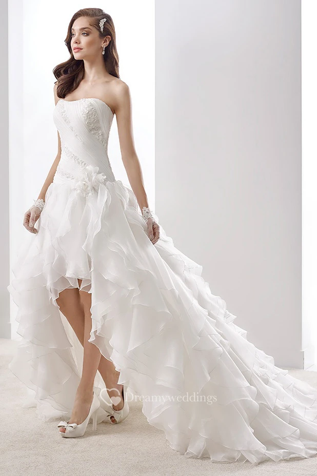 Simple Strapless A-Line Pleated Gown With Brush Train