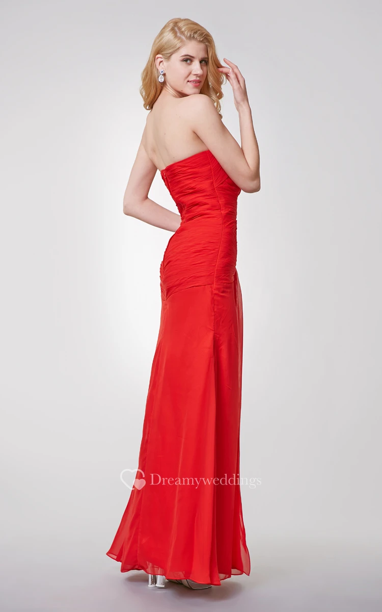 Simple Strapless Ruched Long Chiffon Dress With Draping
