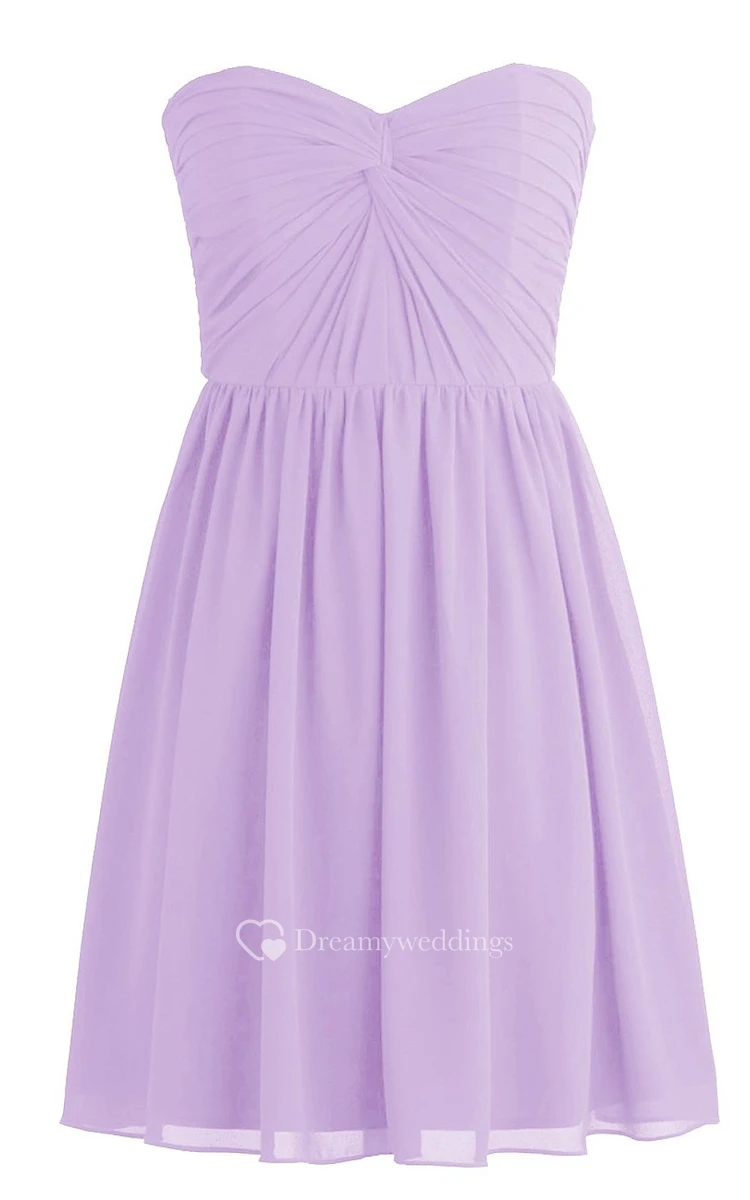 Simple Strapless Sweetheart Drapped Chiffon Short Dress