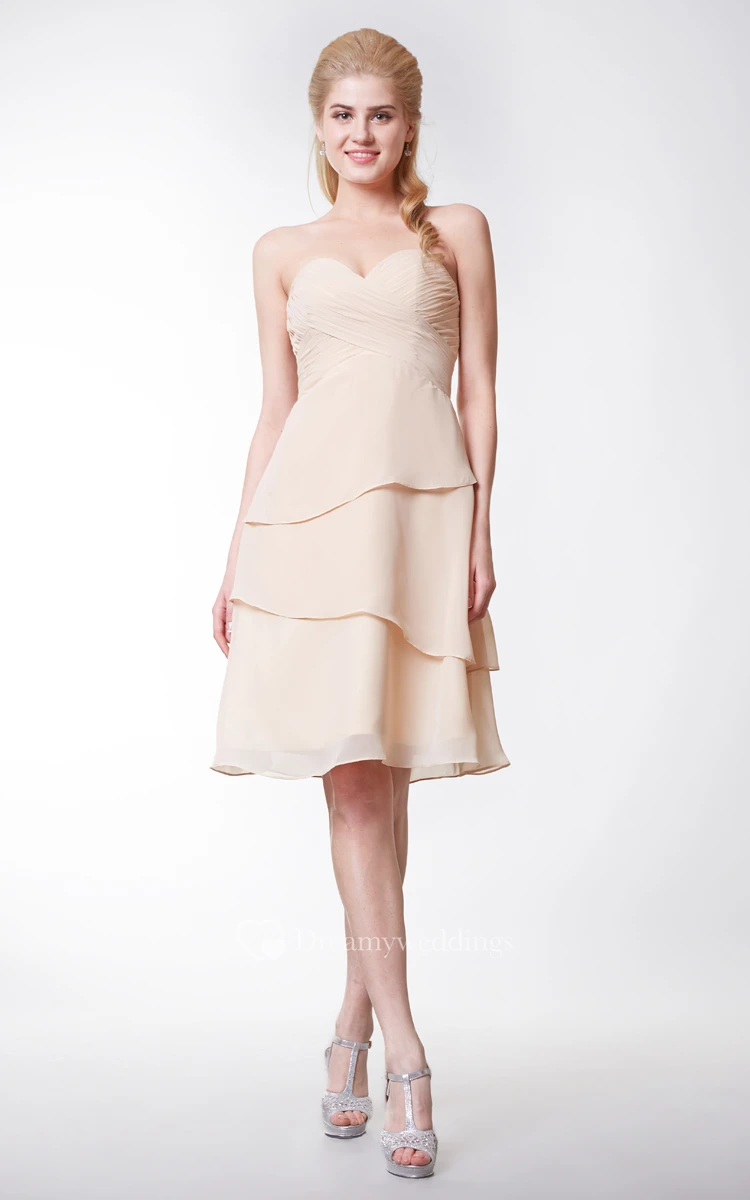 Simple Style Sweetheart Chiffon A-line Knee Length Dress With Layers