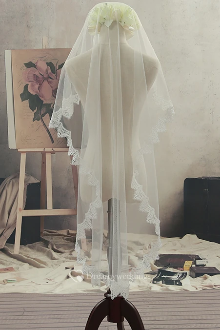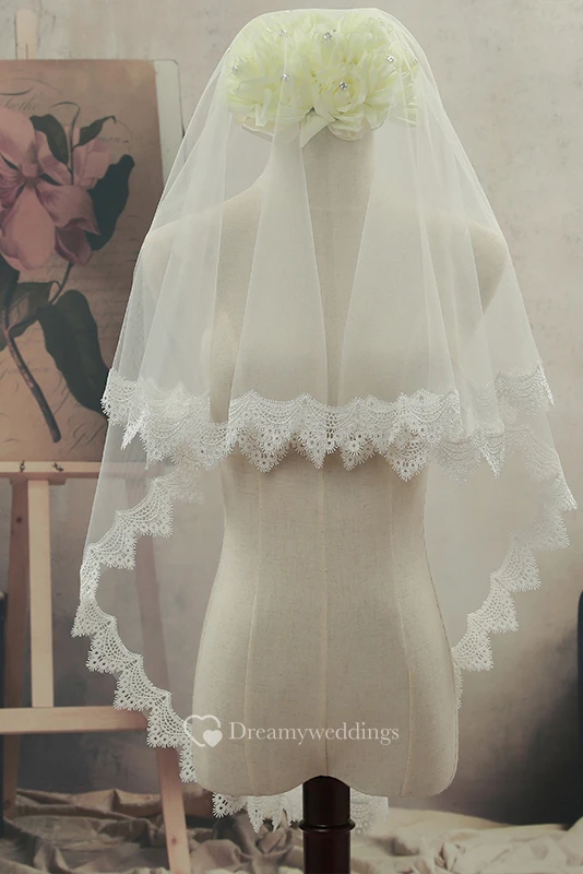 Simple Style Triangular Short Wedding Veil with Lace Edge