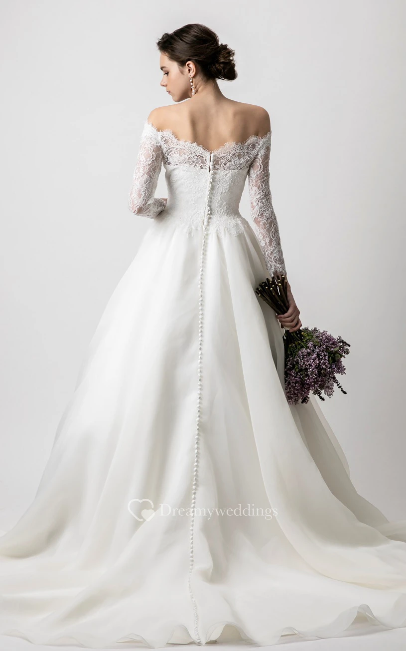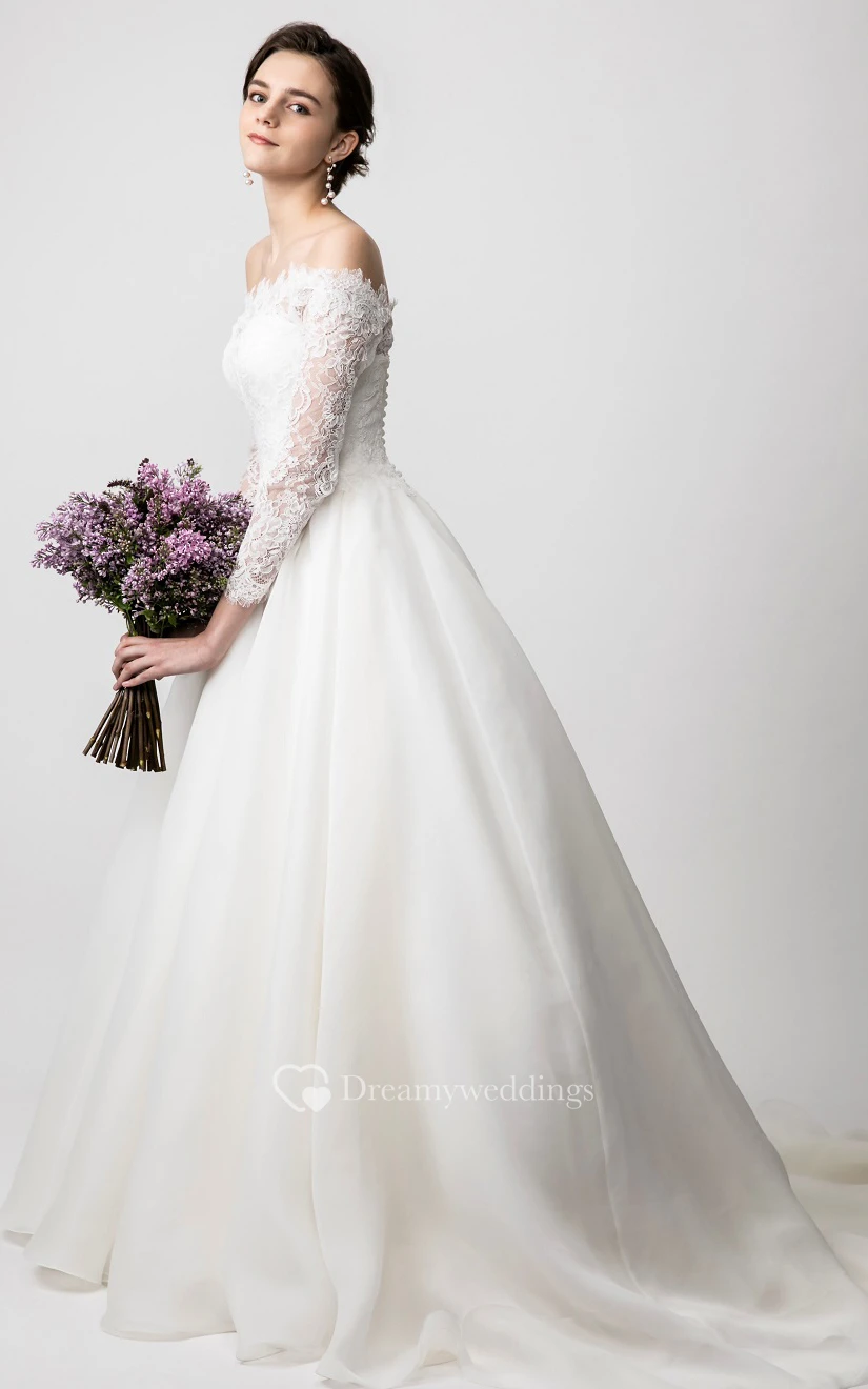 Simple Tulle Ball Gown Floor-length Long Sleeve Wedding Dress with Ruching