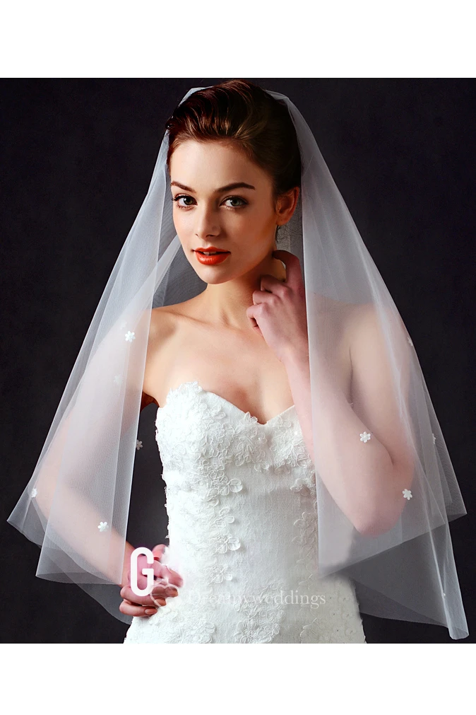 Simple Tulle Elbow Wedding Veil with Flower Appliques