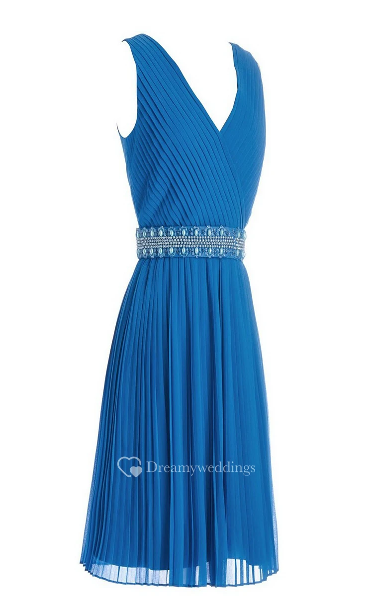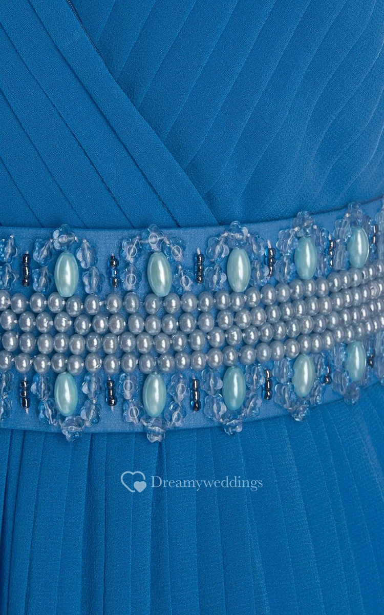 Simple V-neck Pleated A-line Gown With Beaded Band