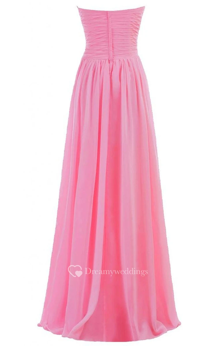 Simplistic Strapless Sweetheart Ruched Chiffon A-line Dress