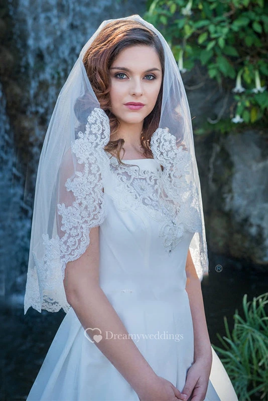 Single Layer Soft Short Bridal Veil With Lace Trim