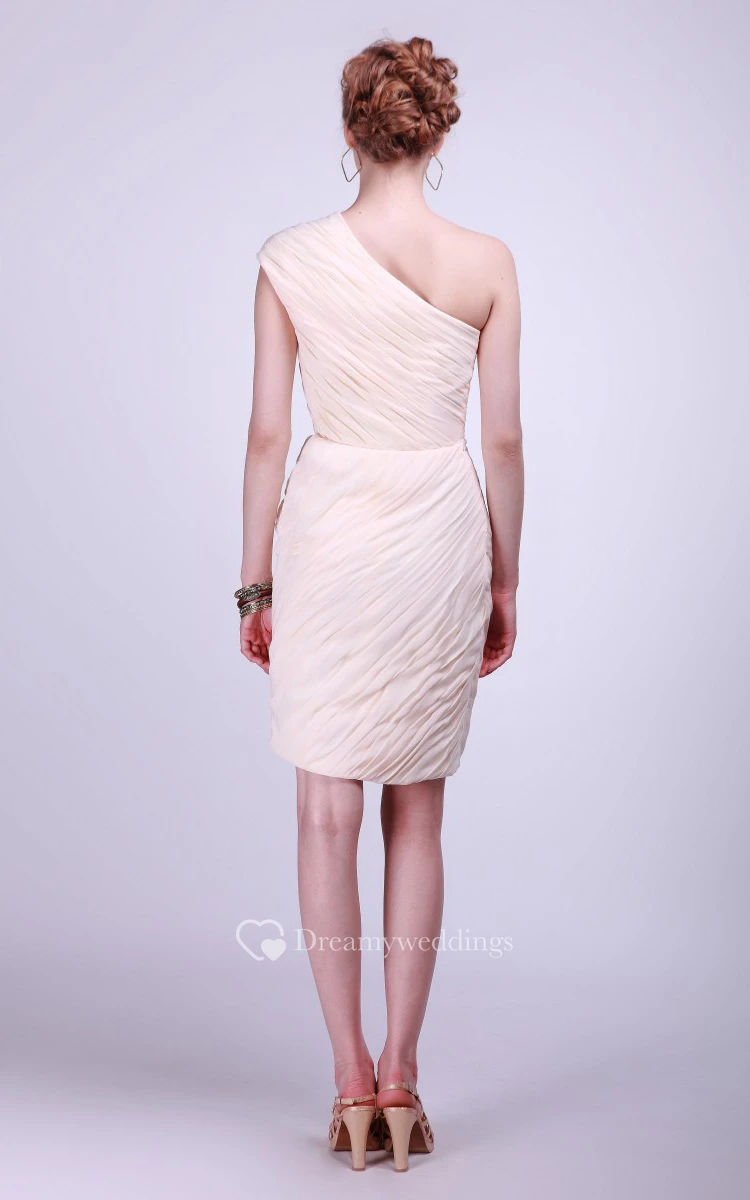 Single Shoulder Short Dress With Pleated Skirt