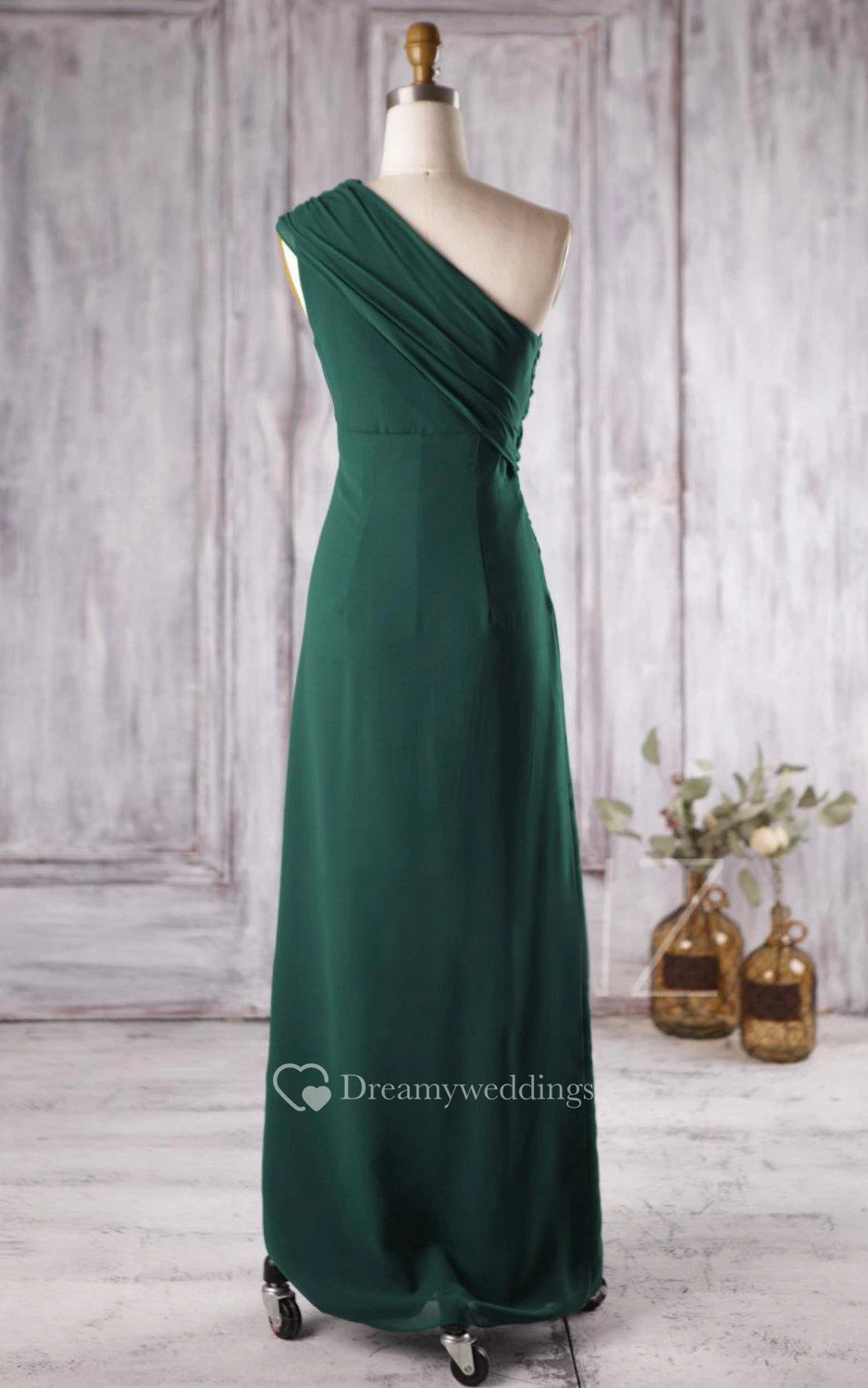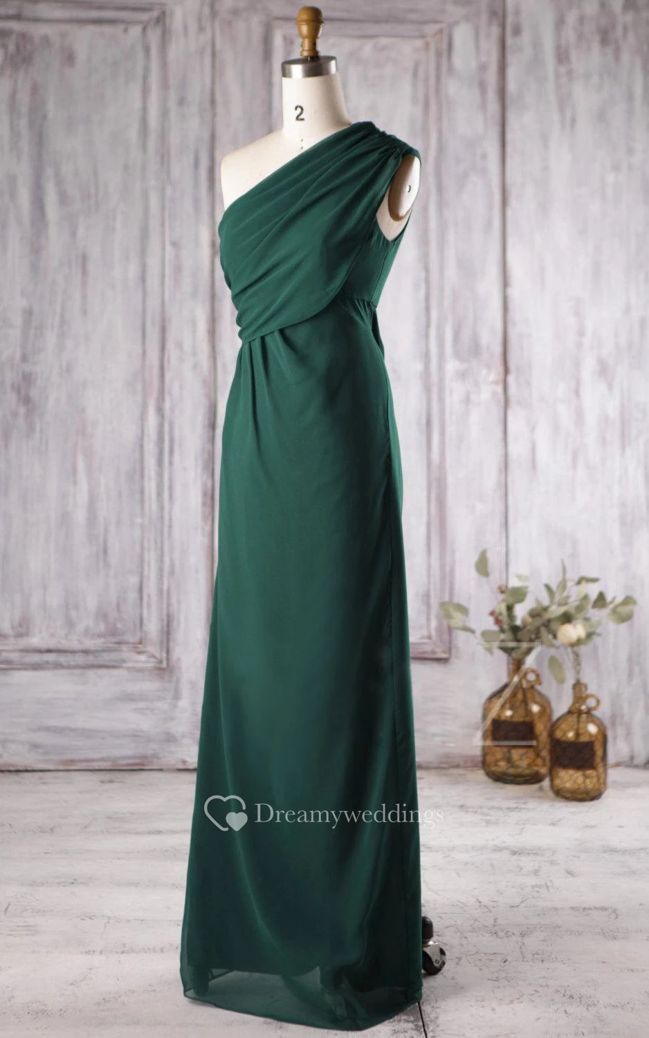 Single Strap A-line Chiffon Floor Length Dress With Ruching