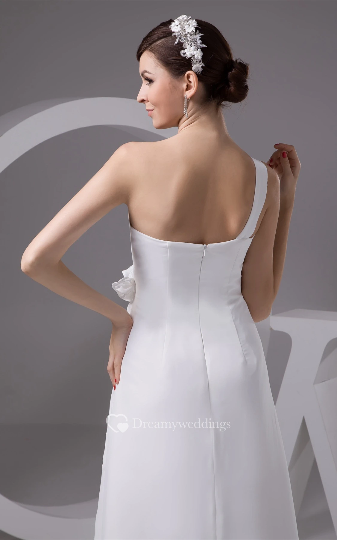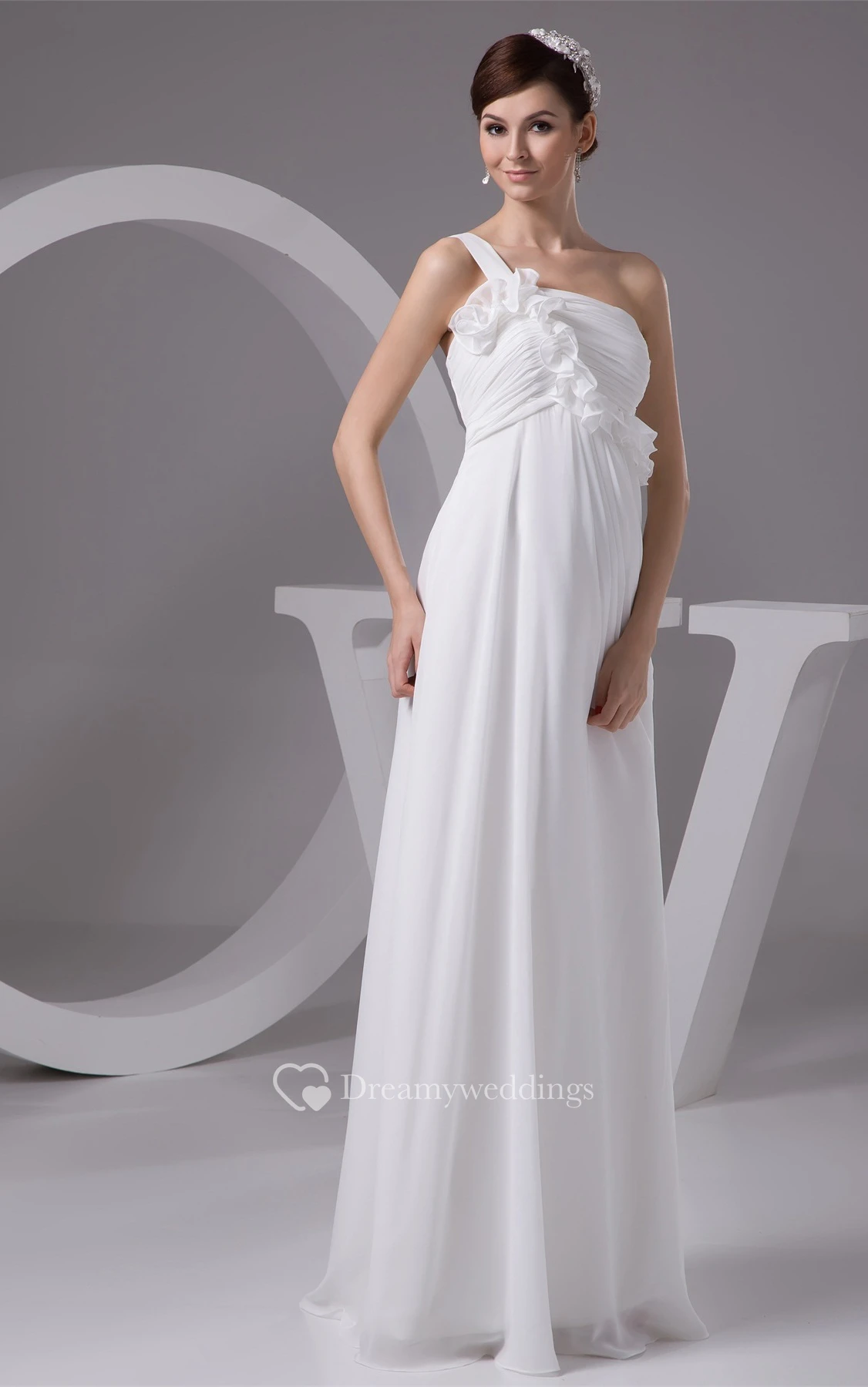 Single-Strap Empire Chiffon Pleats and Dress With Flower