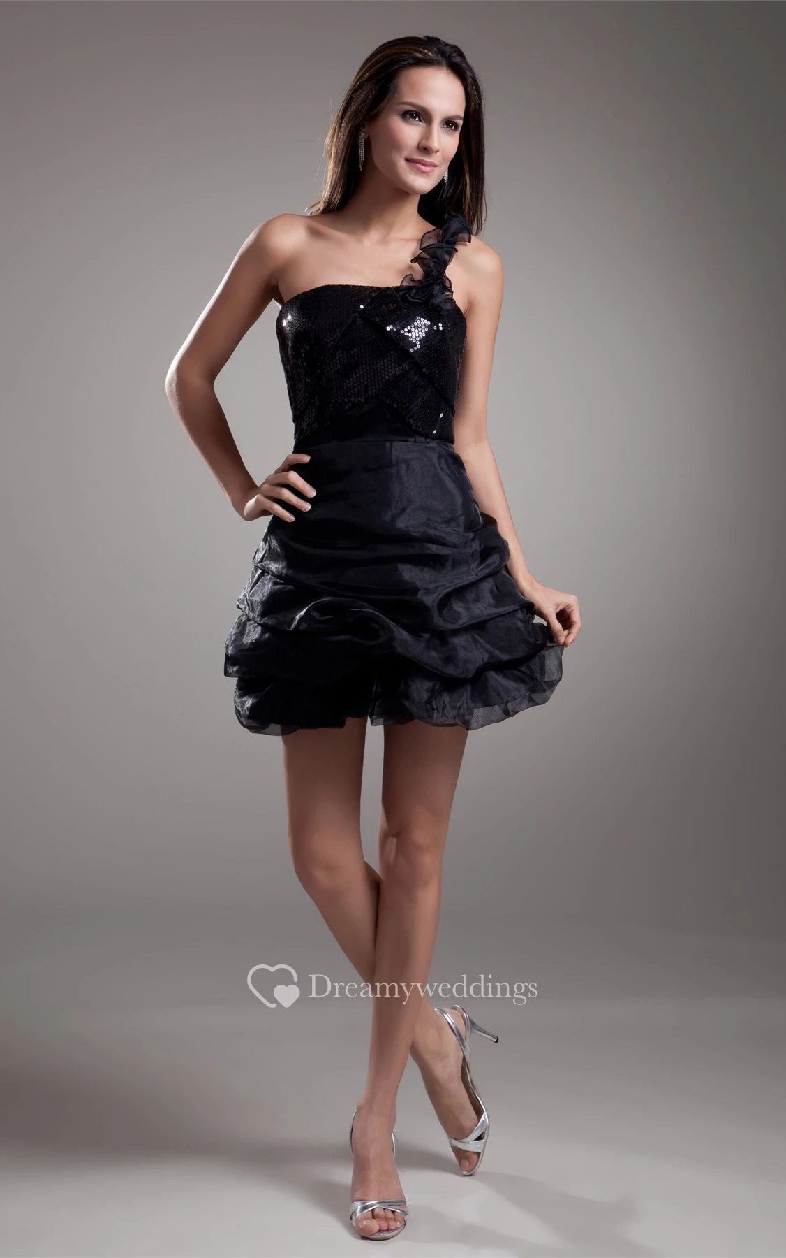 Single-Strap Mini A-Line Pick-Up Dress With Sequined Top