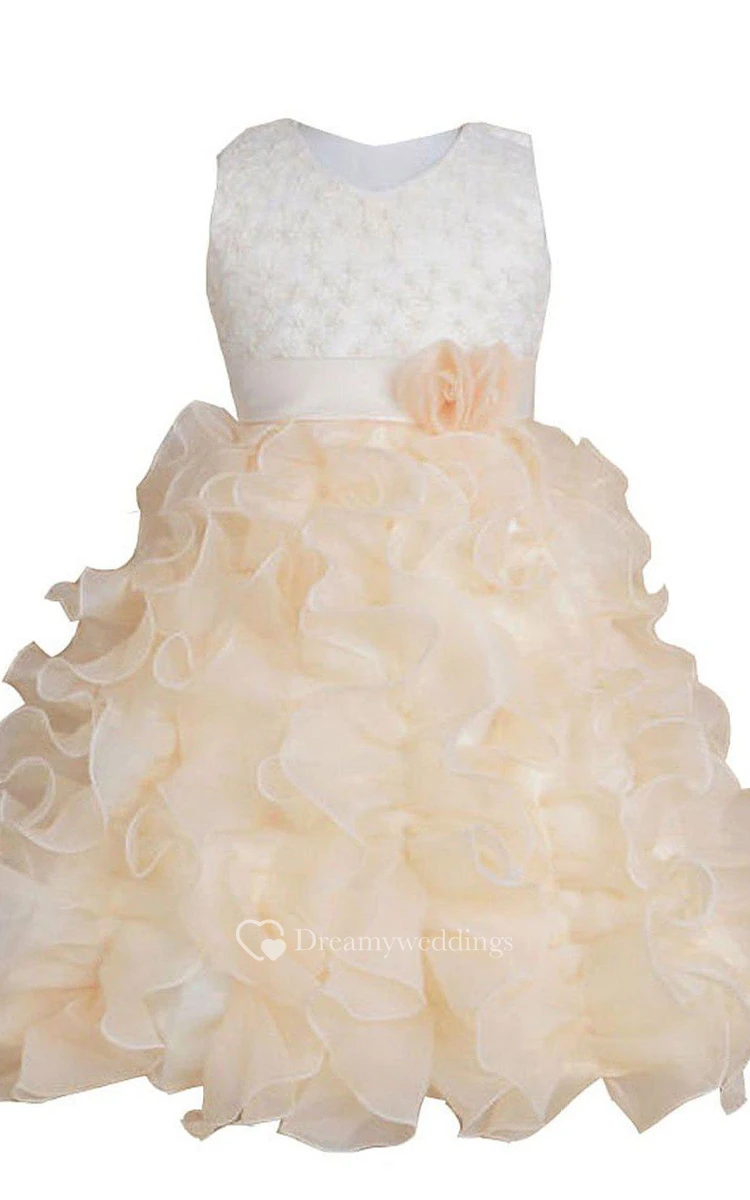 Sleeveless A-line Appliqued Dress With Cascade Ruffles