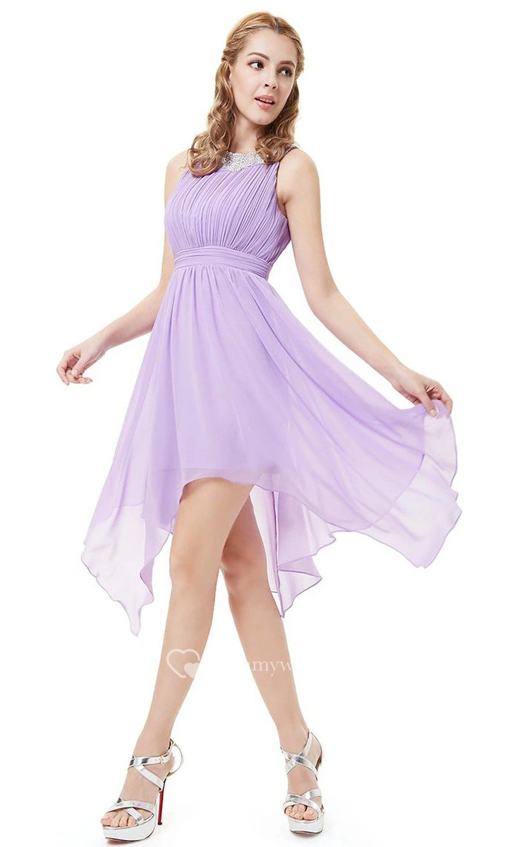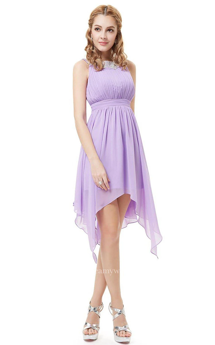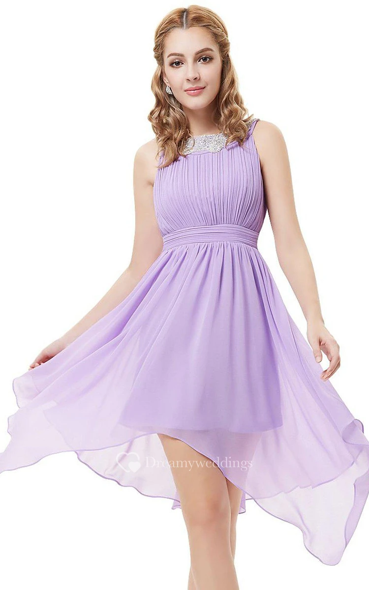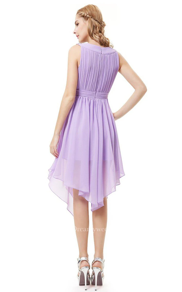 Sleeveless A-line Asymmetrical Dress With Pleats