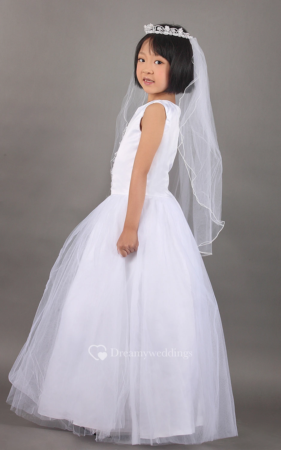 Sleeveless A-Line Ball Gown With Lace Appliques and Tulle Overlay