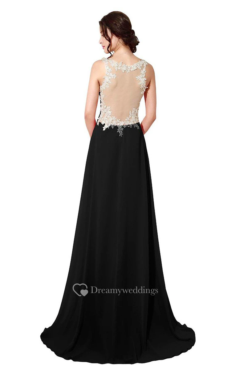 Sleeveless A-line Chiffon Dress With Illusion Back