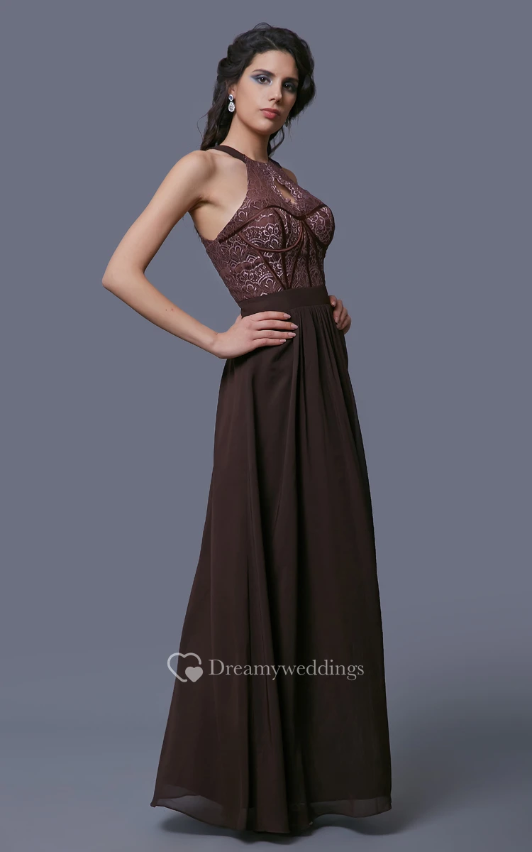 Sleeveless A-Line Chiffon Dress With Keyhole Back and Lace Bodice