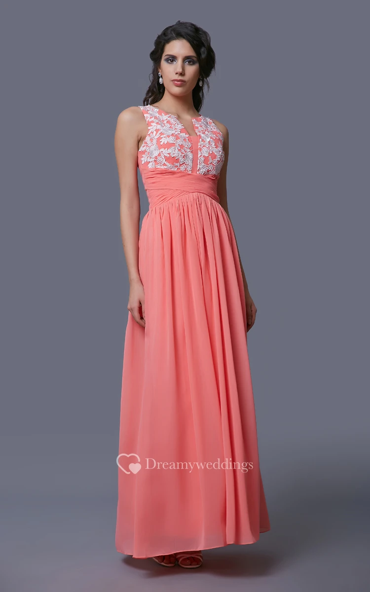Sleeveless A-Line Chiffon Dress With Lace Appliques and Notched Neck