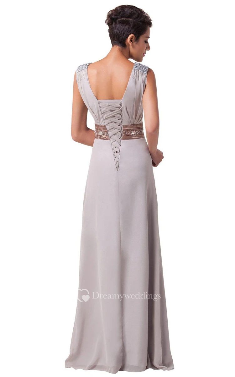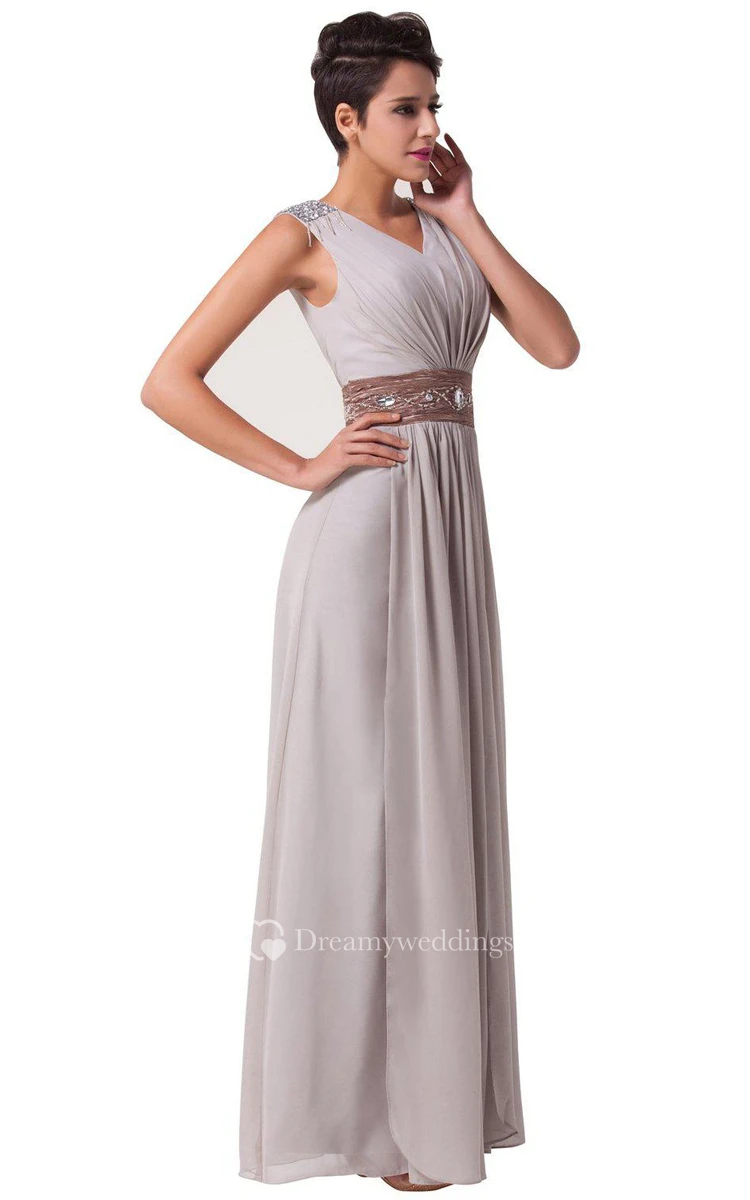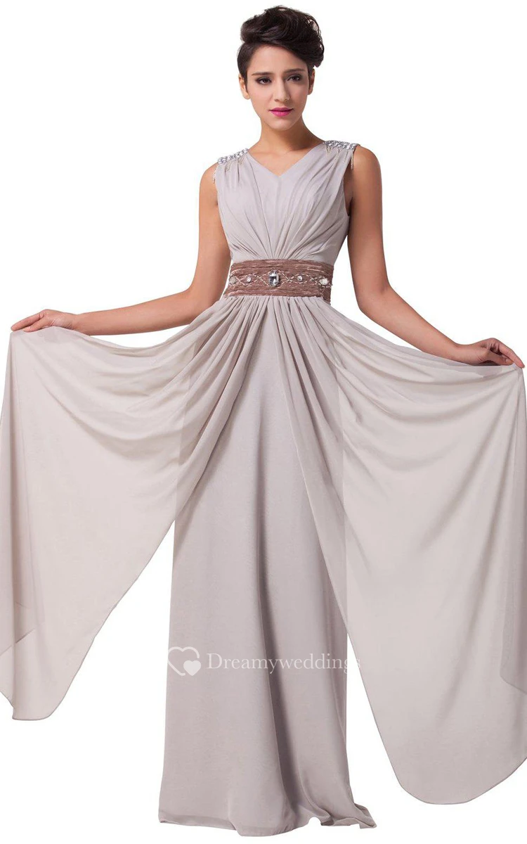 Sleeveless A-line Chiffon Dress With Pleats