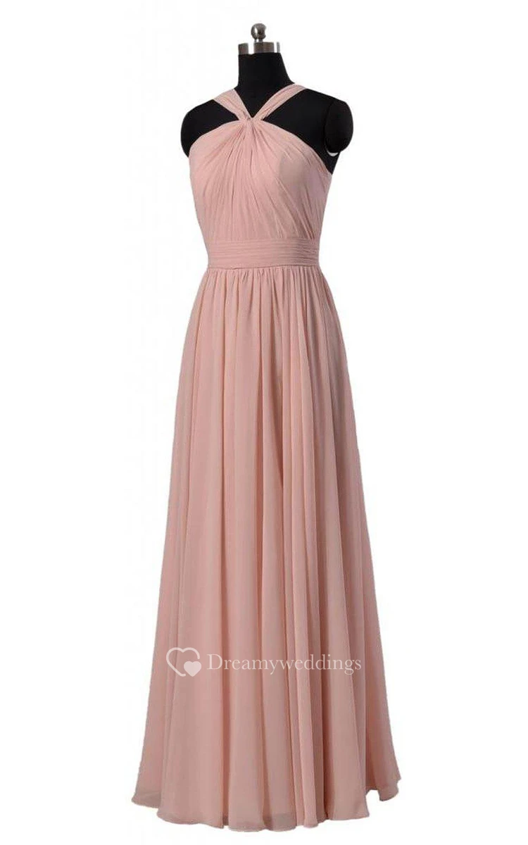 Sleeveless A-line Chiffon Gown With Pleats