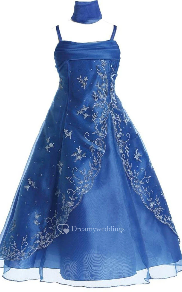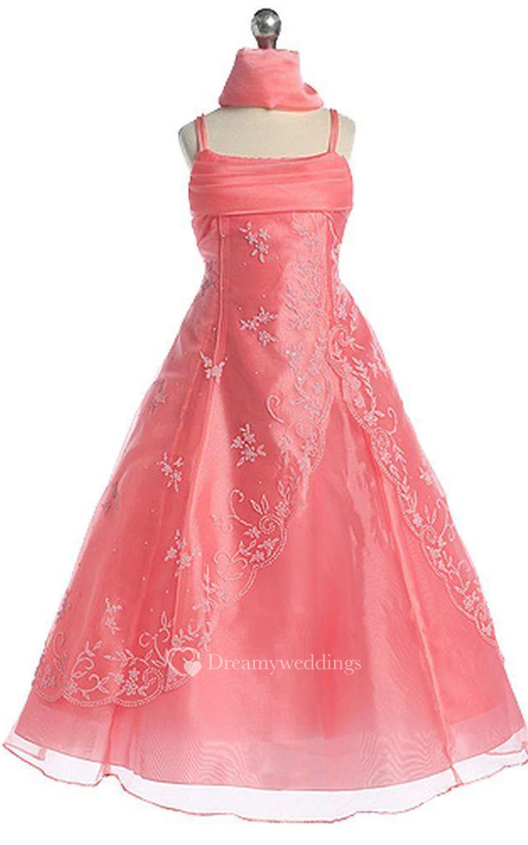 Sleeveless A-line Dress With Appliques and Spaghetti Straps
