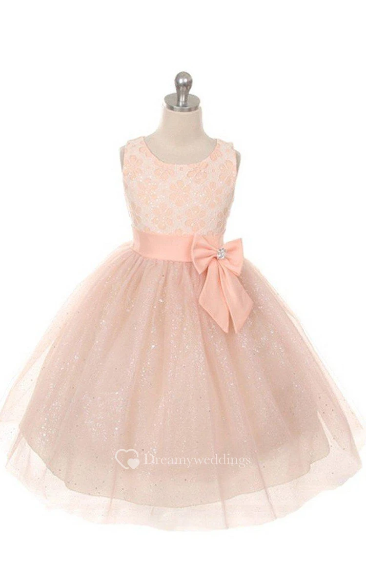 Sleeveless A-line Dress With Bow and Lace