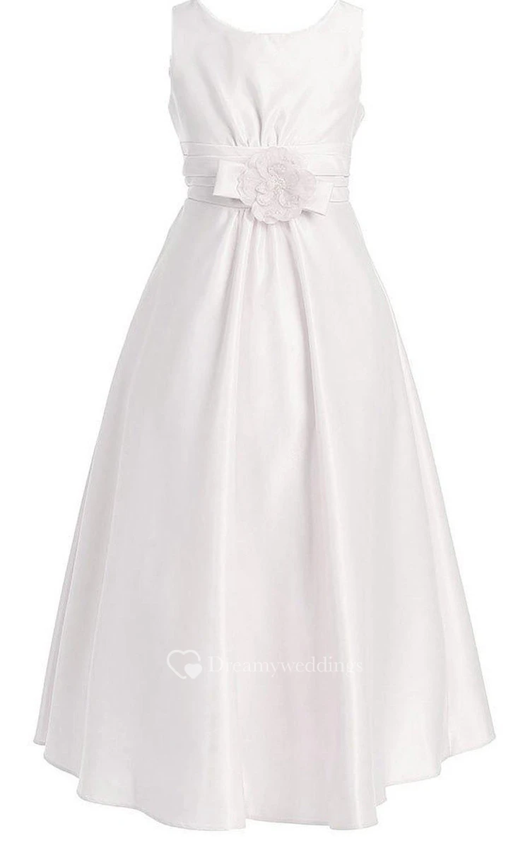 Sleeveless A-line Dress With Floral Waist