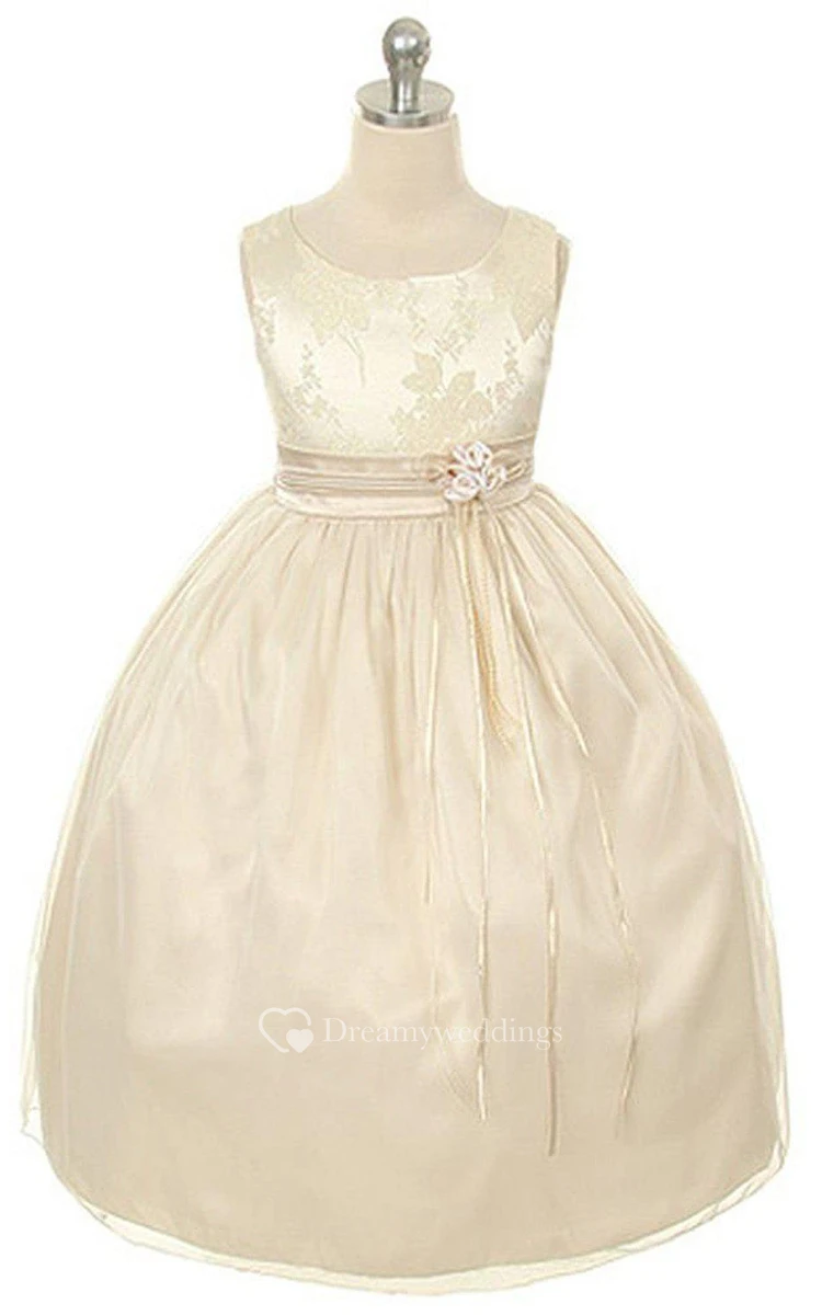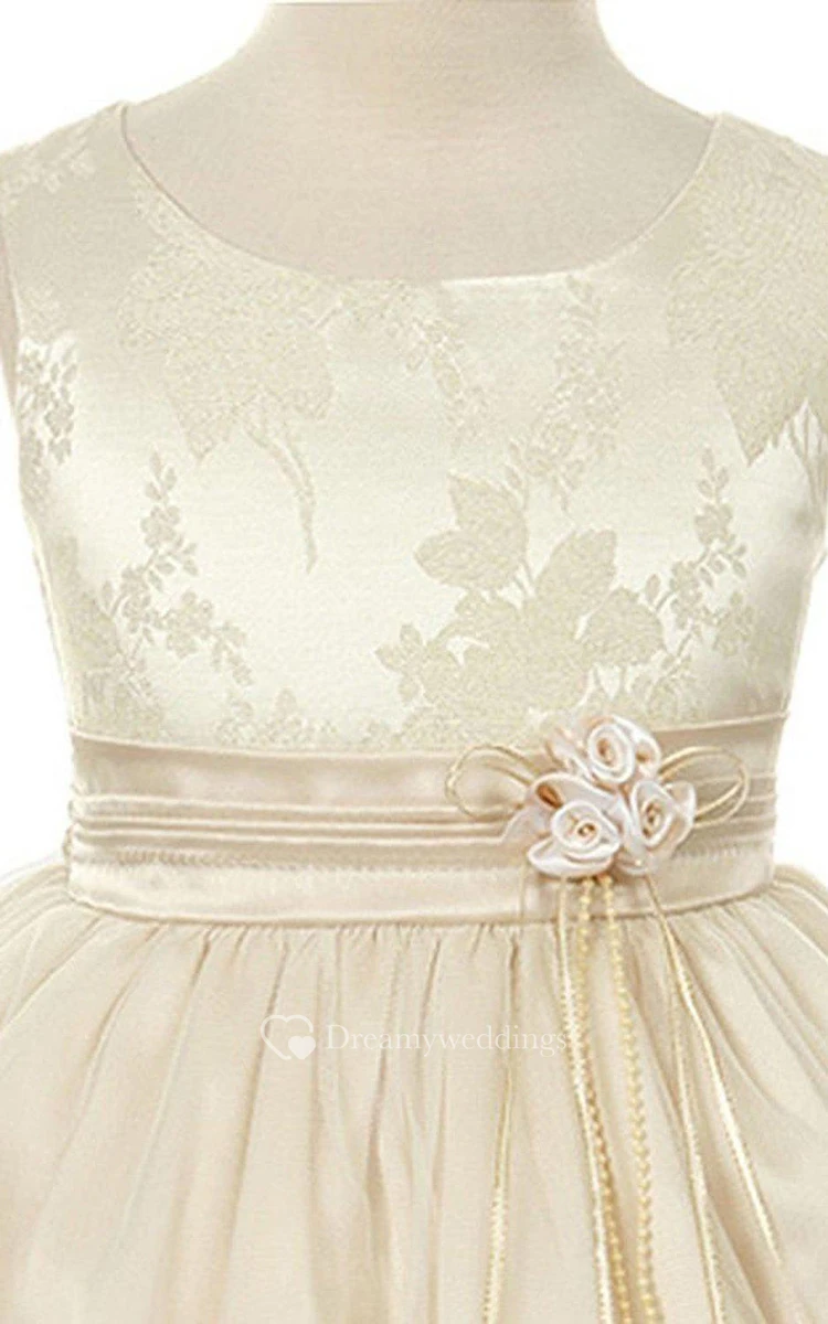 Sleeveless A-line Dress With Flowers and Bow