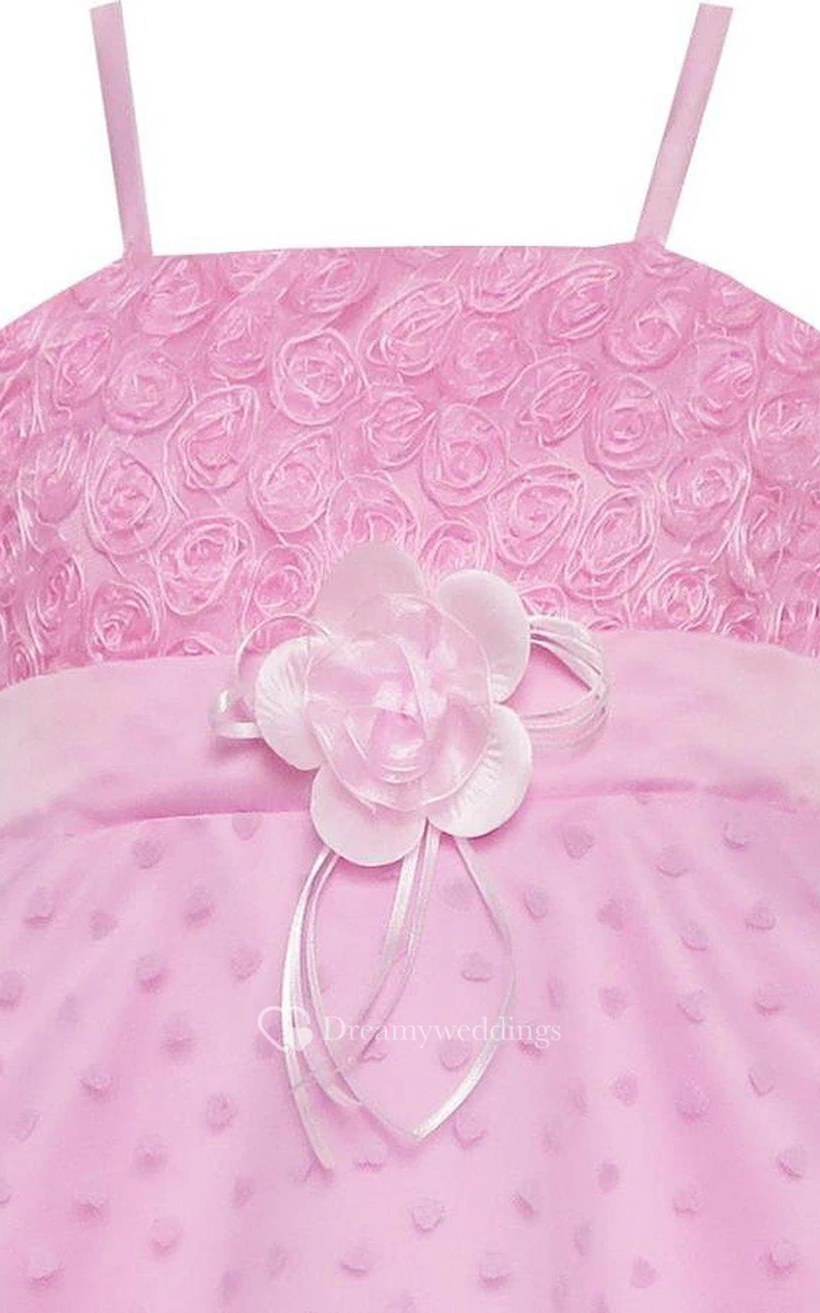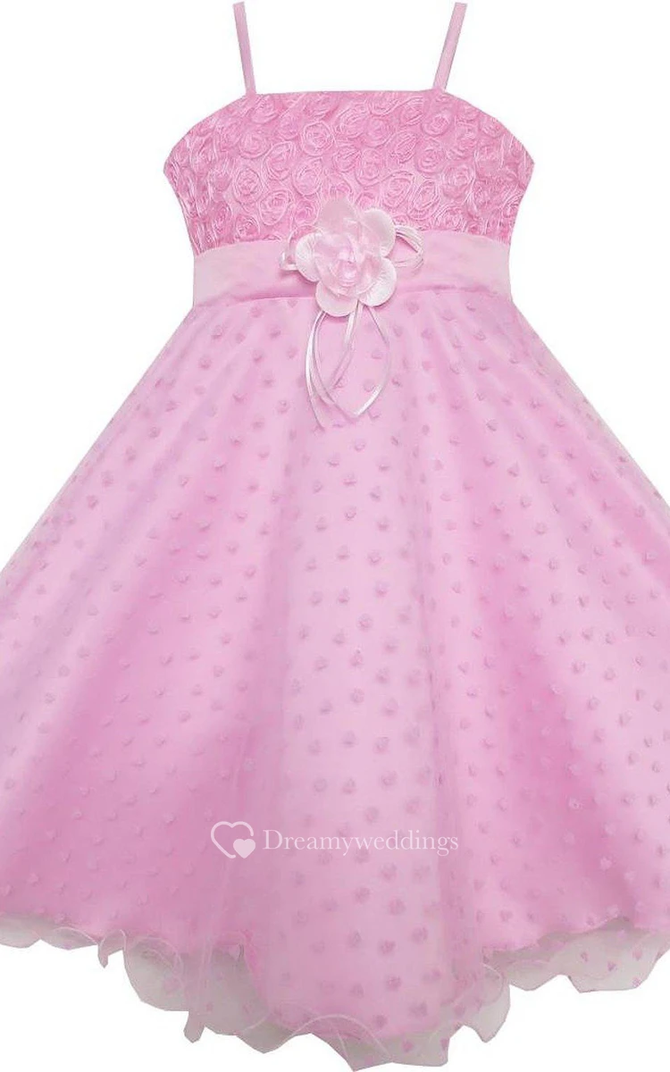 Sleeveless A-line Dress With Flowers and Spaghetti Straps