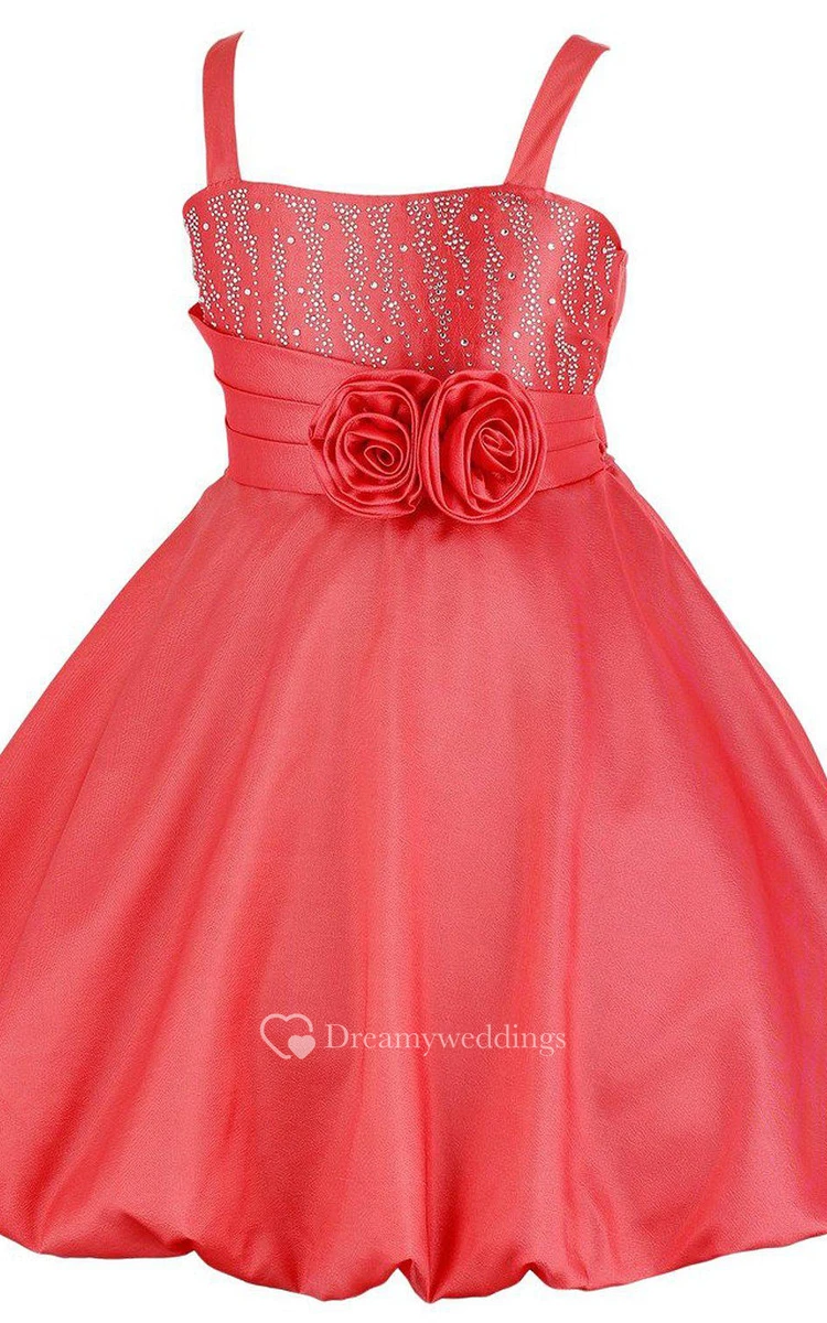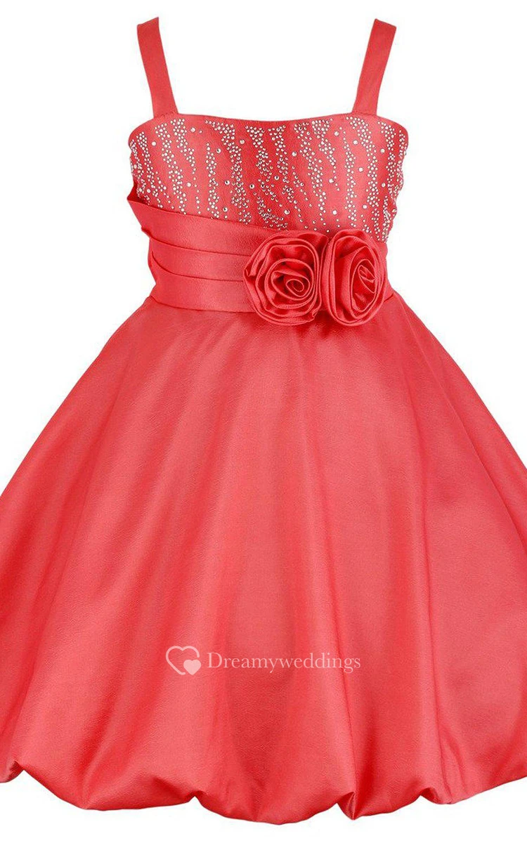 Sleeveless A-line Dress With Flowers and Straps