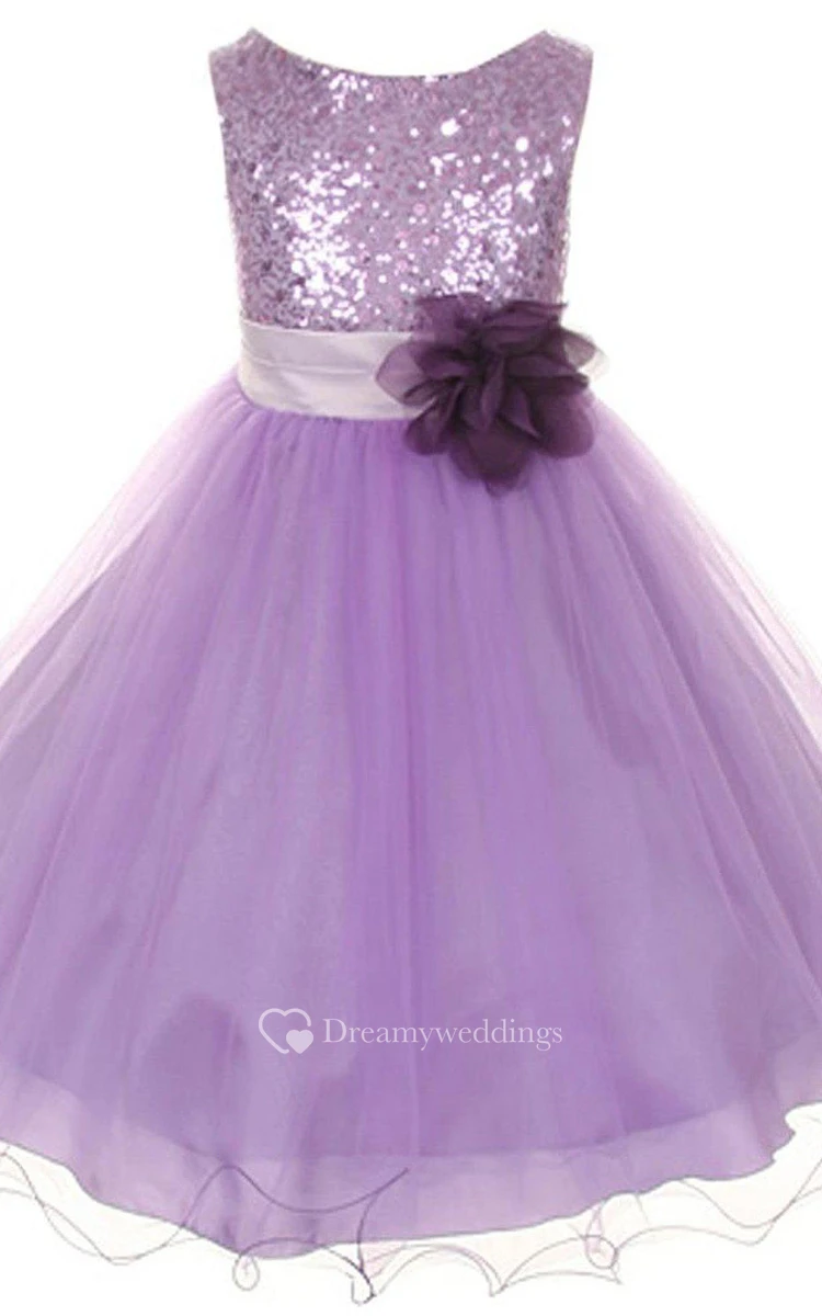 Sleeveless A-line Dress With Sequined Bodice and Flower