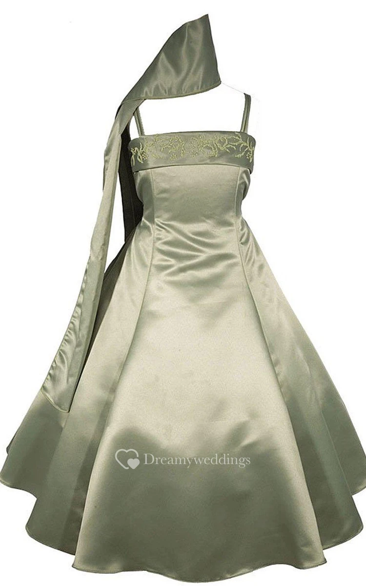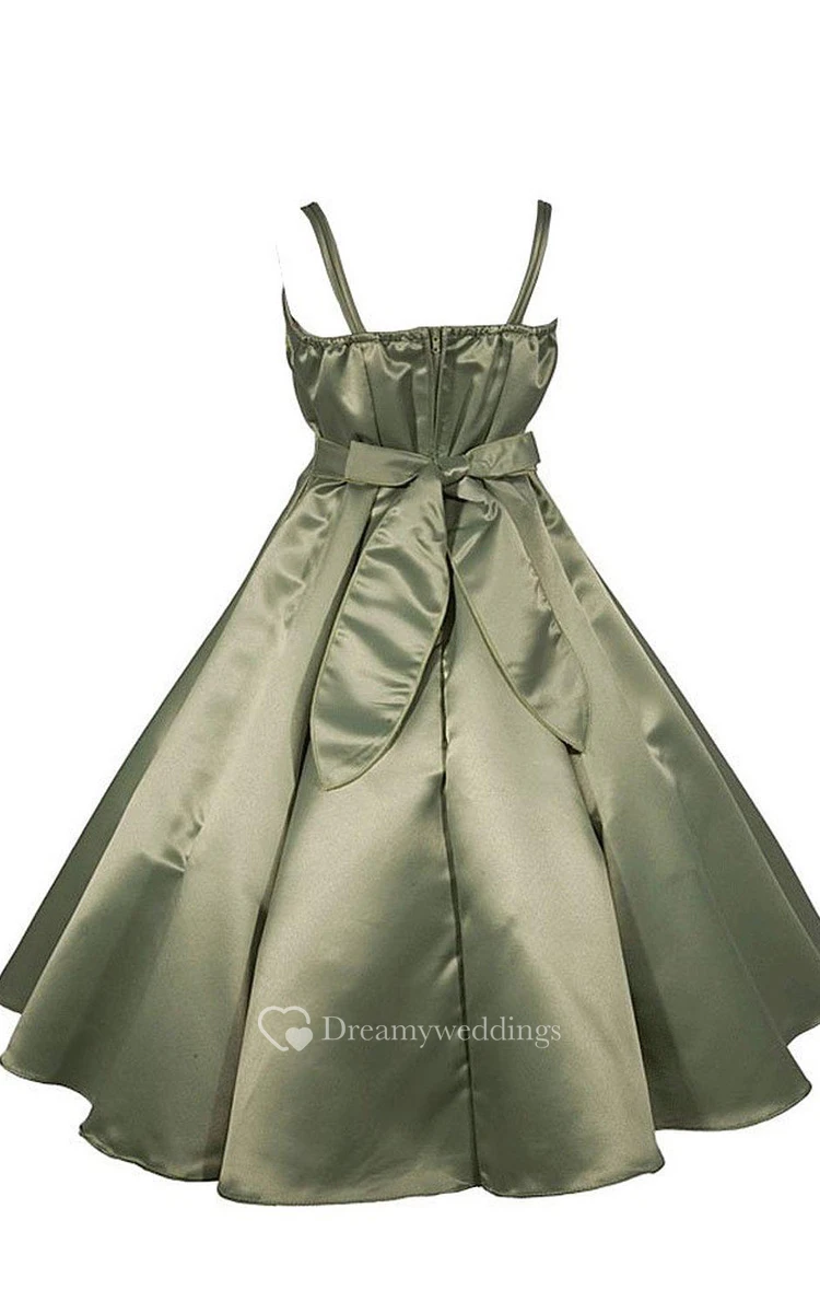 Sleeveless A-line Dress With Spaghetti Straps and Bow