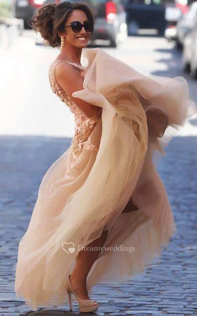 Sleeveless A-line Floor-length Chiffon Dress with Lace