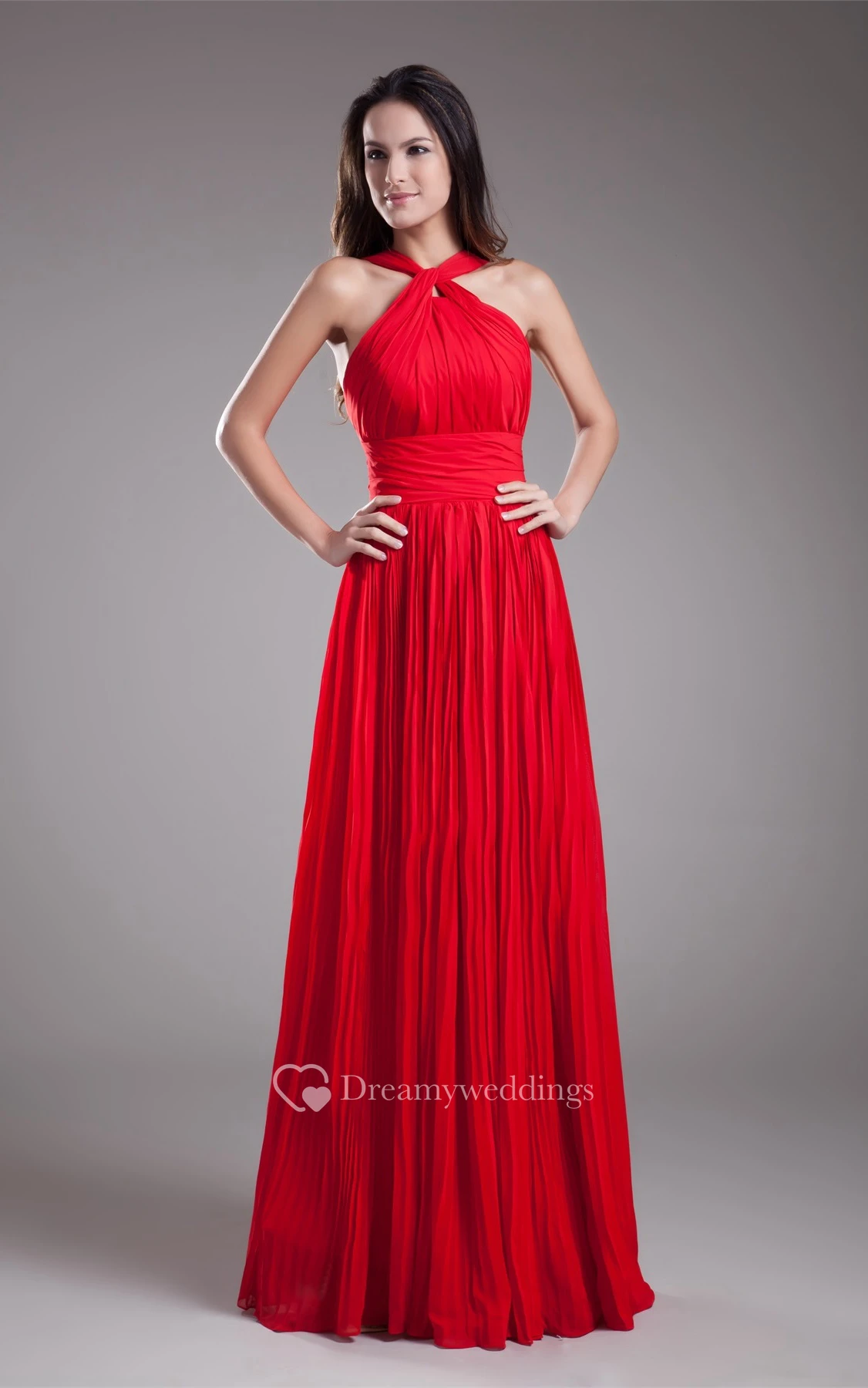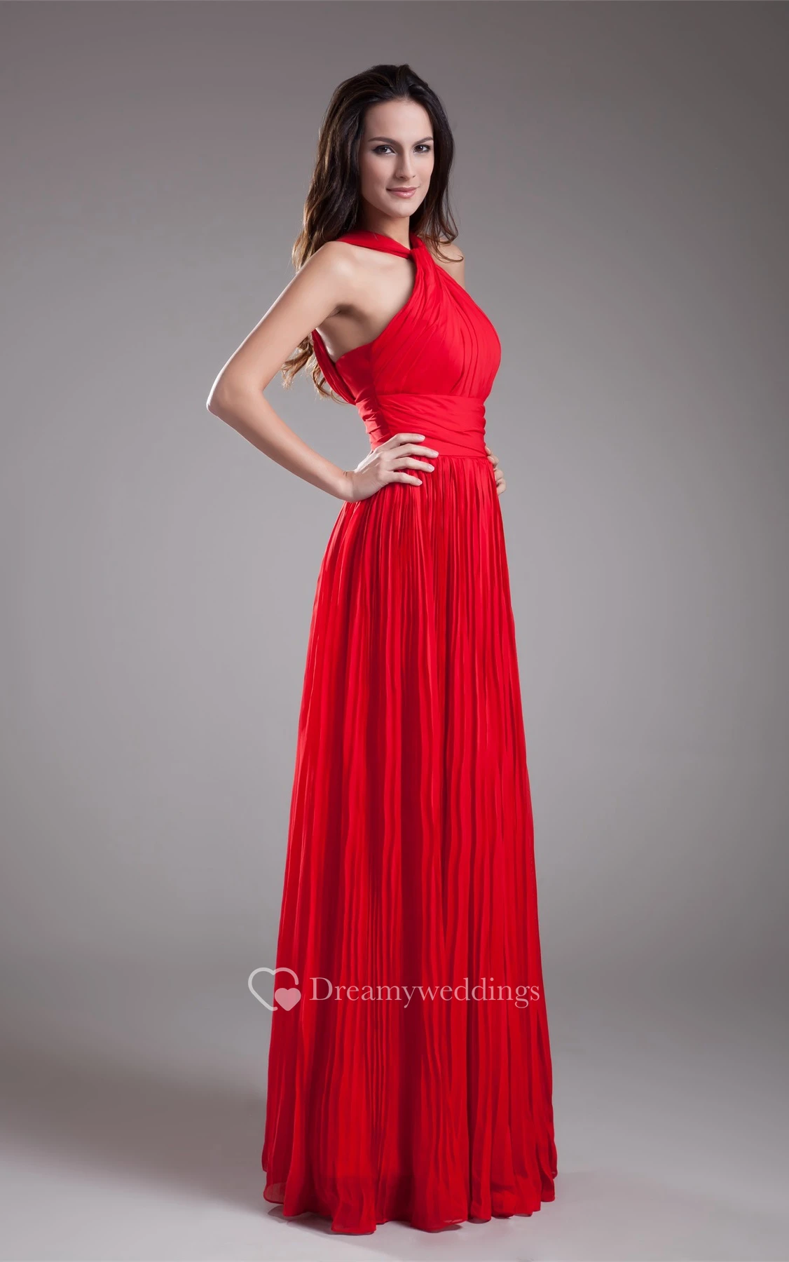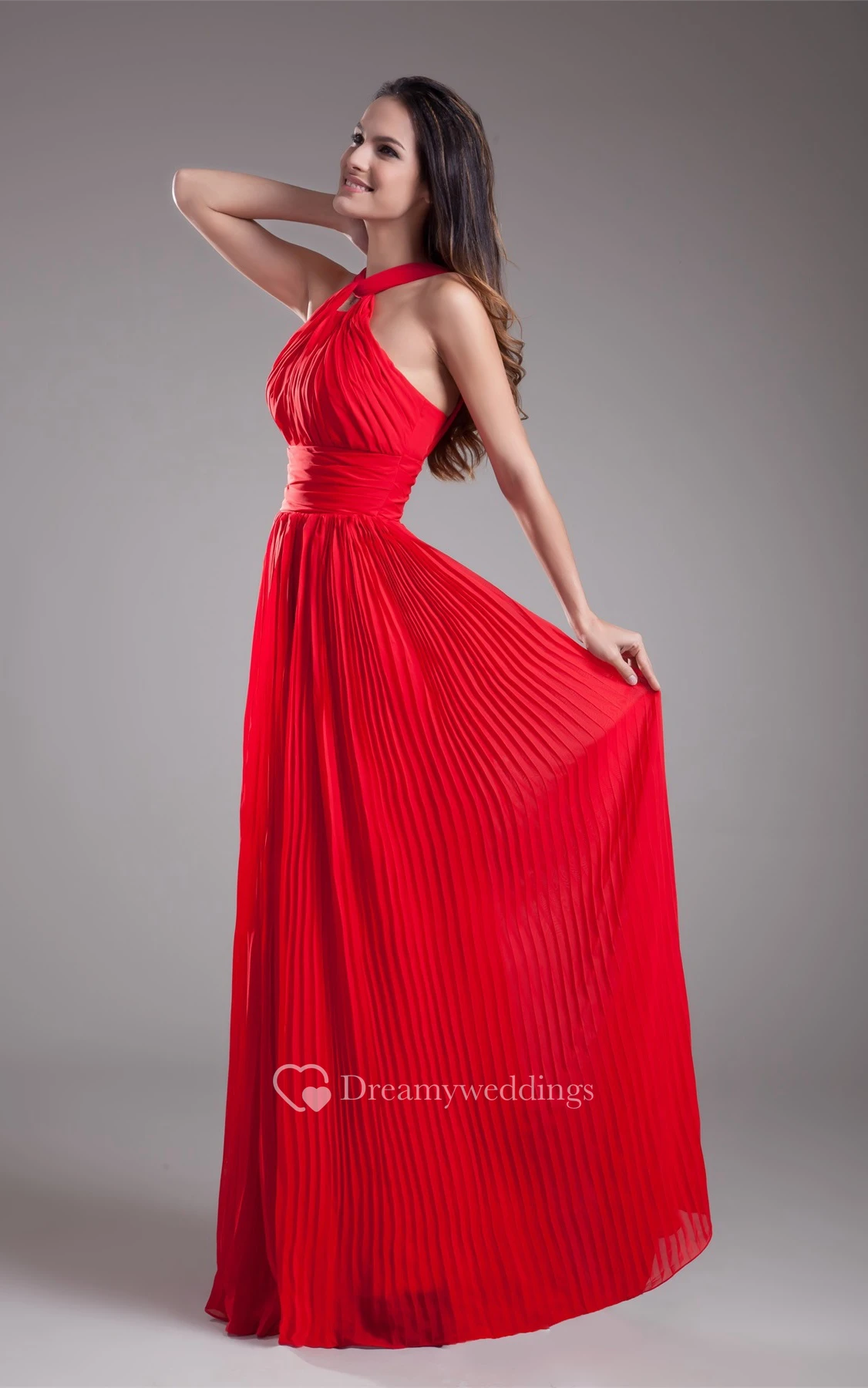 Sleeveless A-Line Floor-Length Ruched Zipper Back and Dress With Pleats