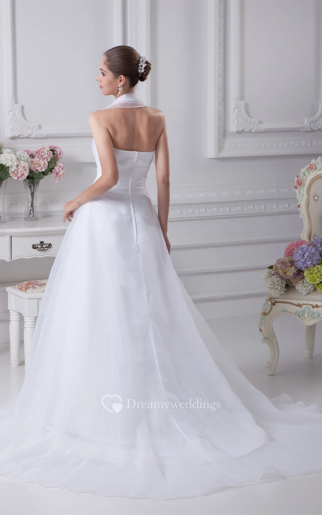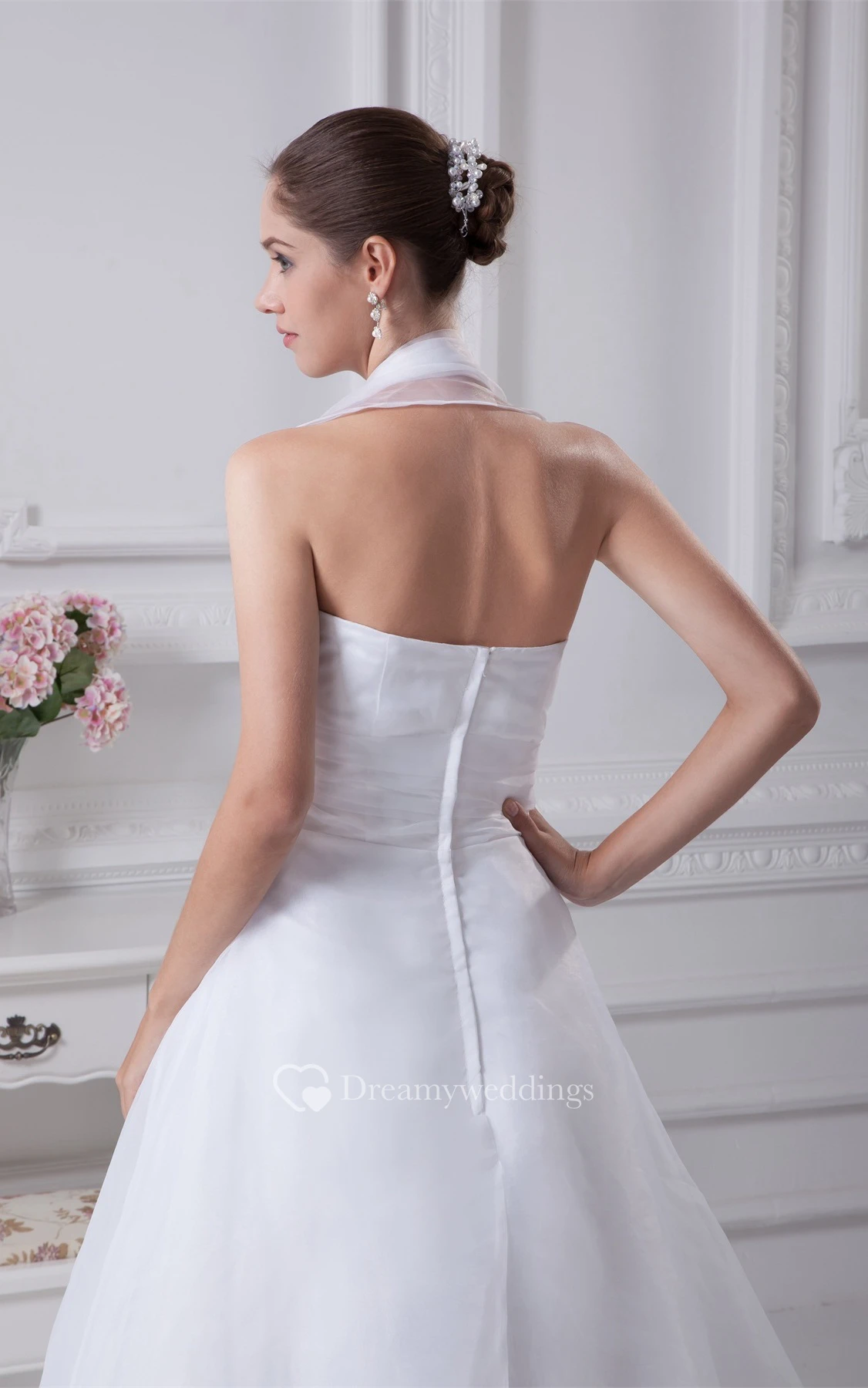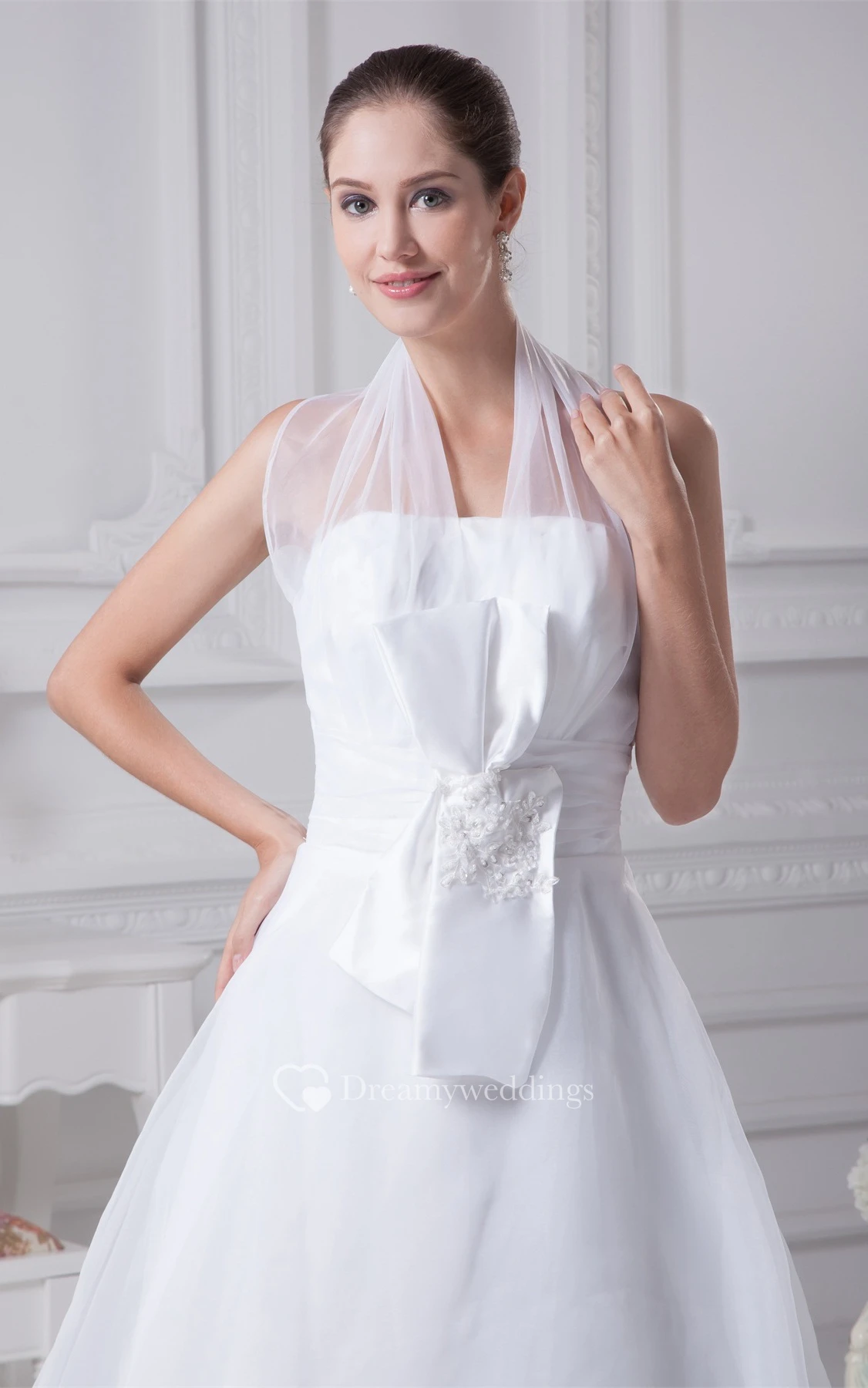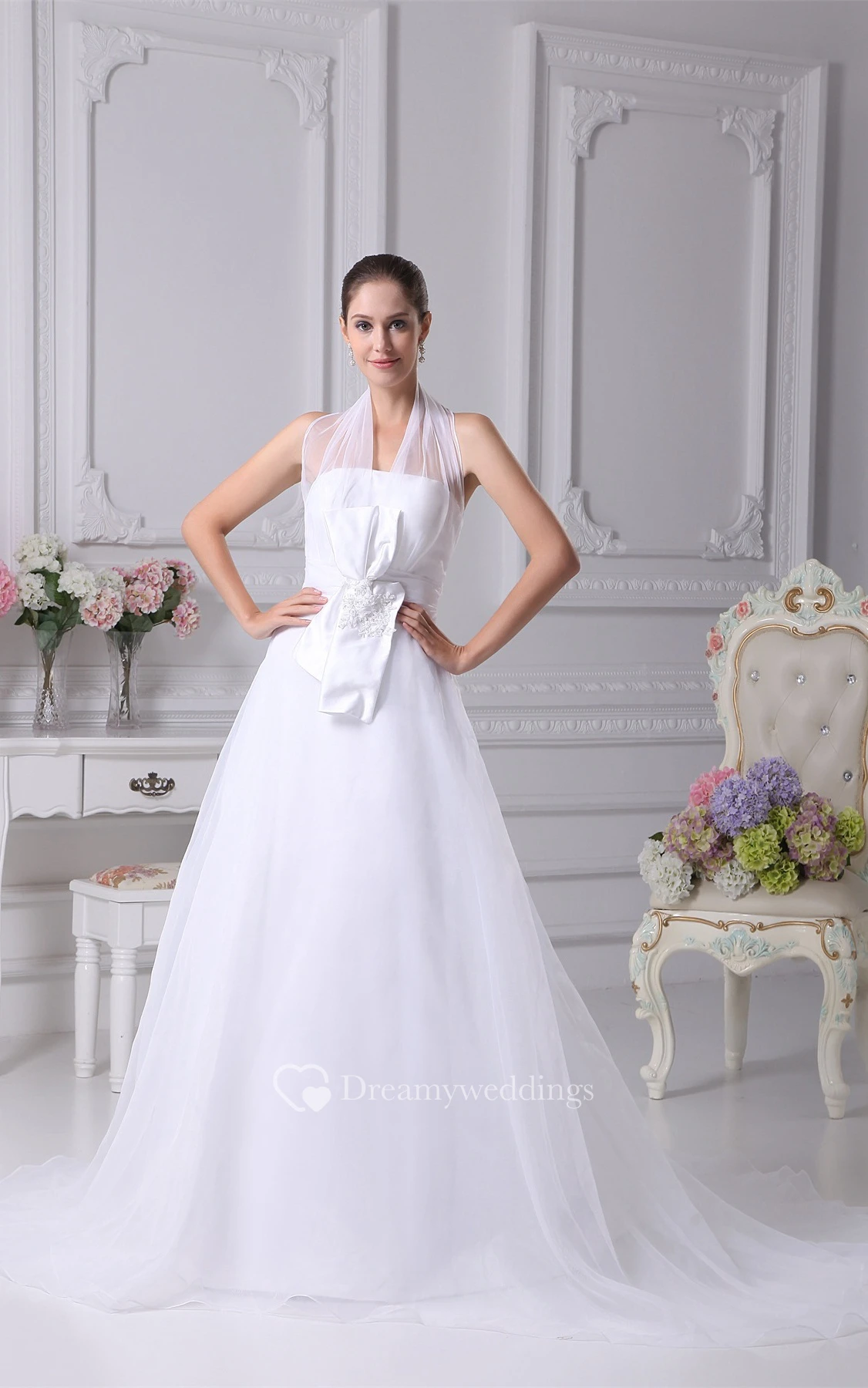 Sleeveless A-Line Halter Gown With Bowed Sash Zipper Back